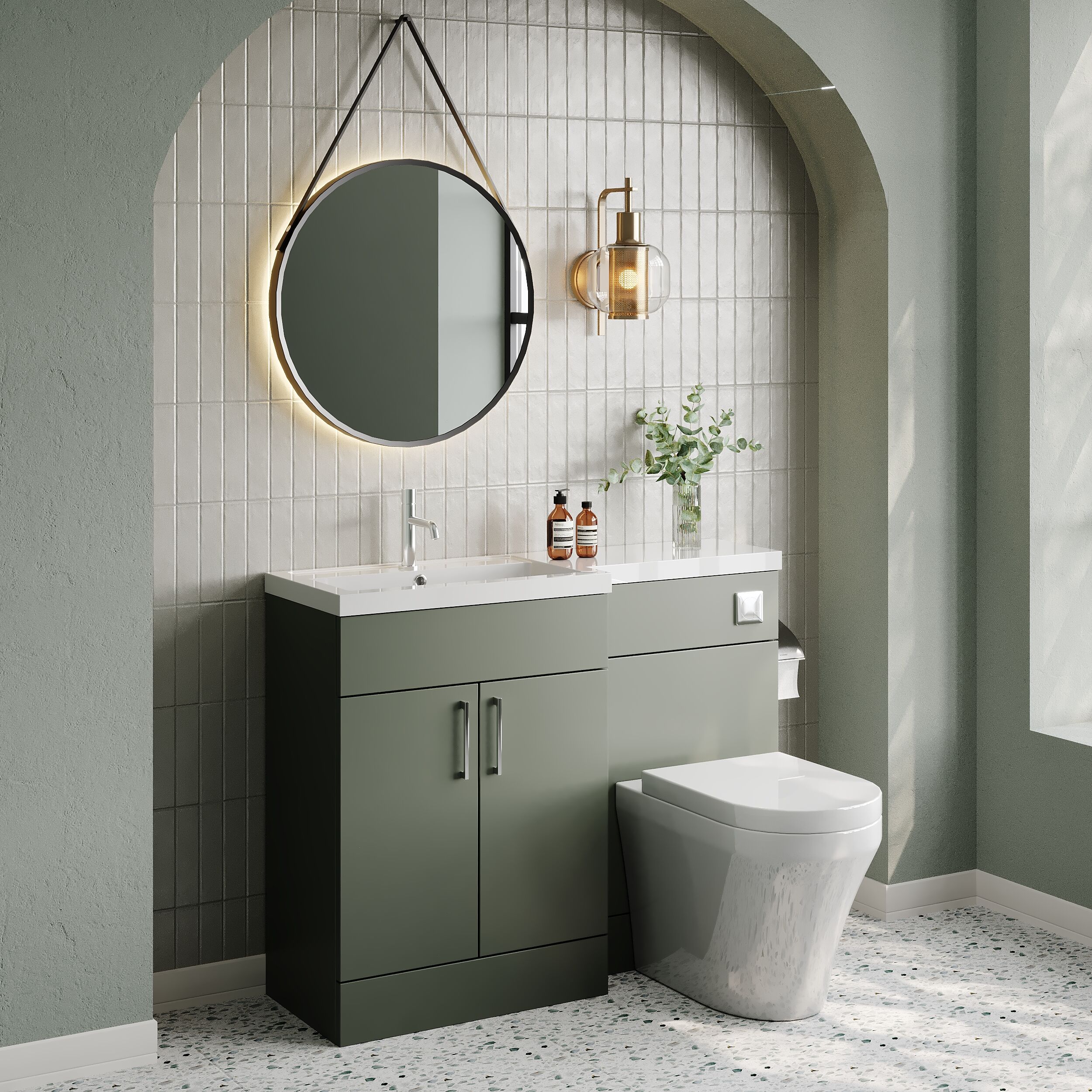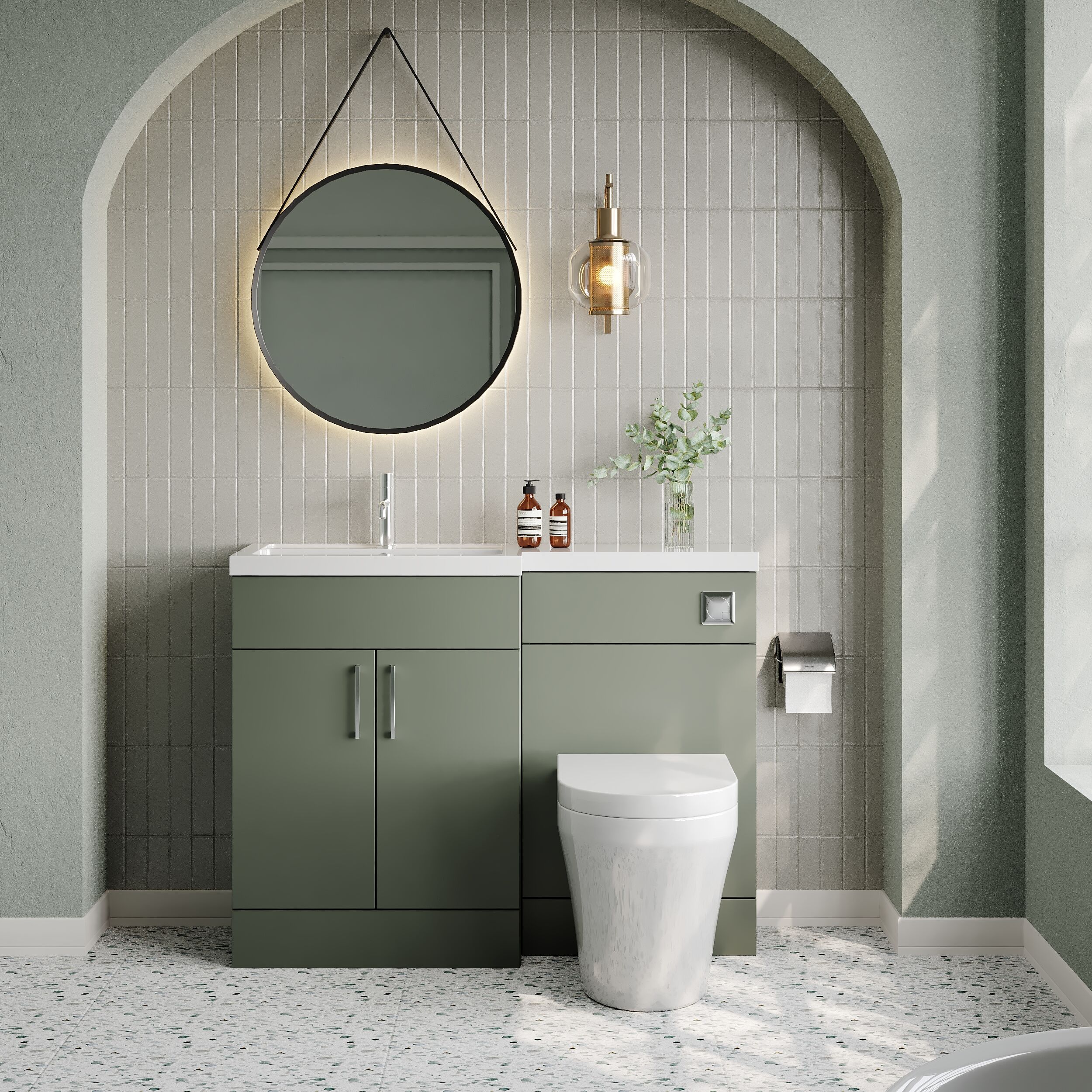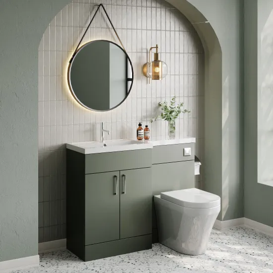 Nuie Lux Krest 1100mm Left Hand Fern Green Combination Unit with L-Shaped Basin Including Handles
