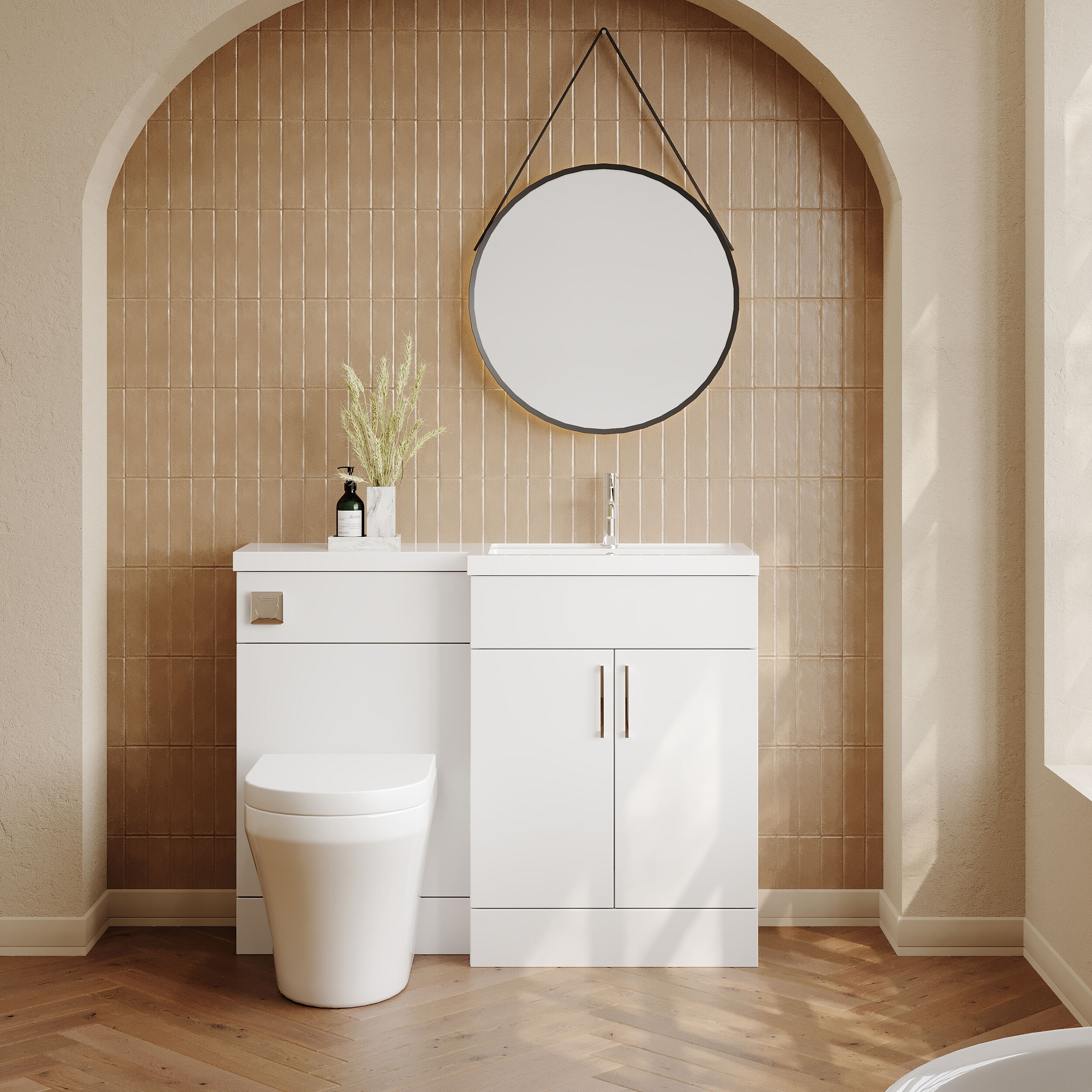Nuie Lux Krest 1100mm Full Depth Combination Unit & L-Shaped Basin - Right Hand - Matt White