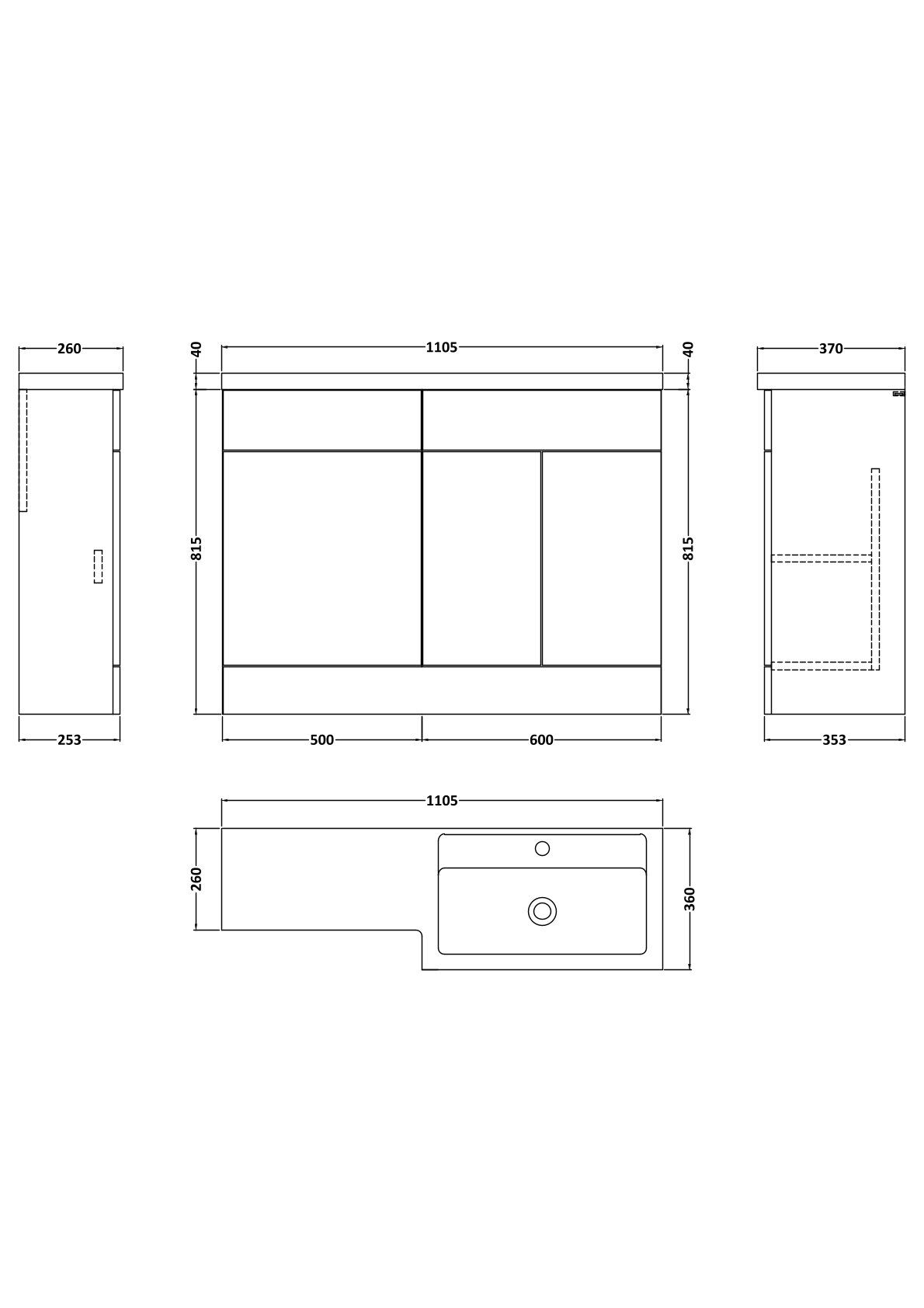 Nuie Lux Krest 1100mm Full Depth Combination Unit & L-Shaped Basin - Right Hand - Soft Black