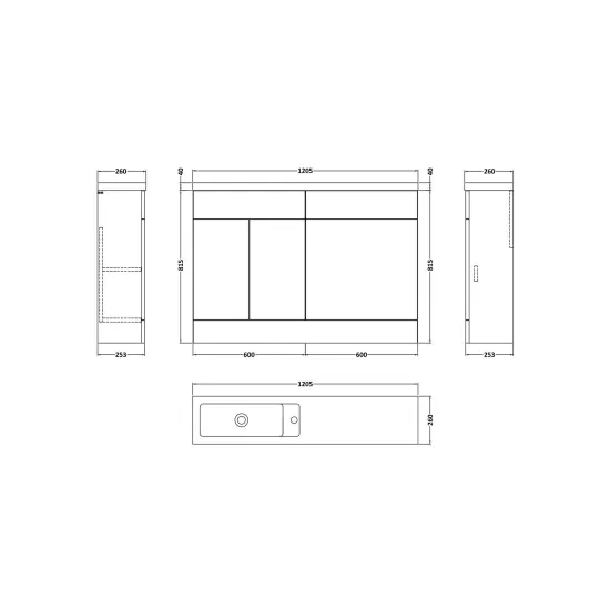 Nuie Lux Krest 1200mm Compact Combination Unit & Basin - Autumn Oak