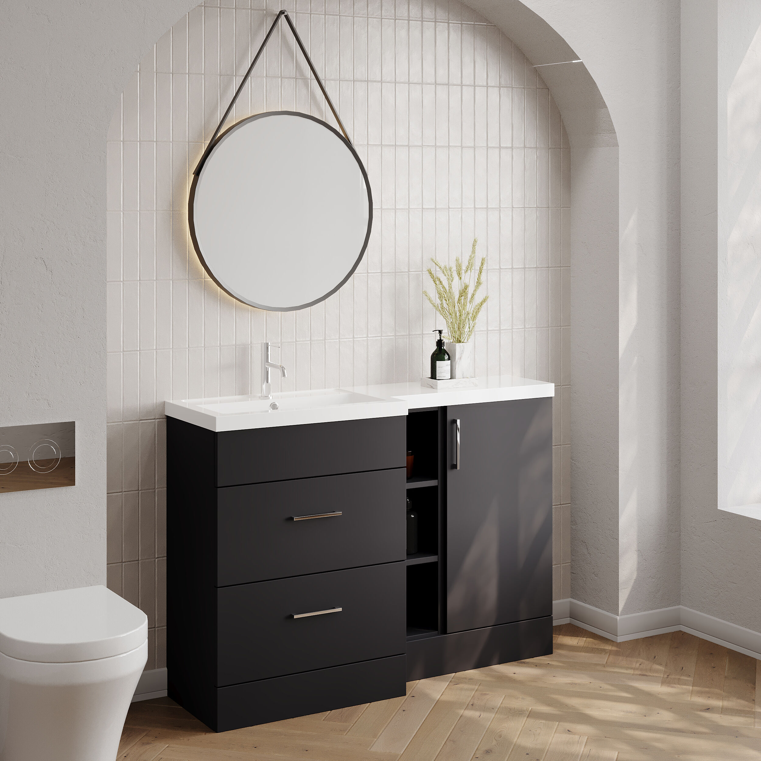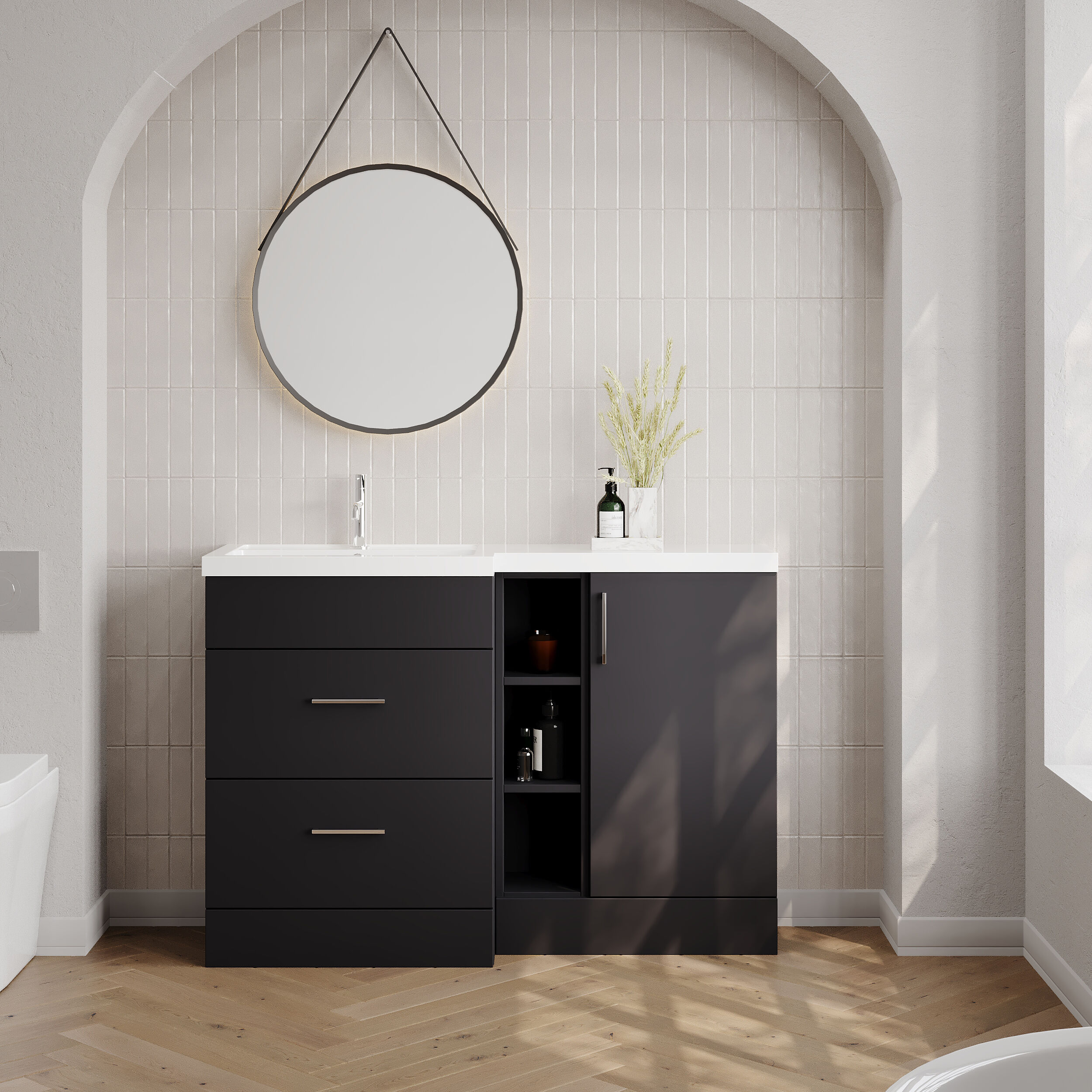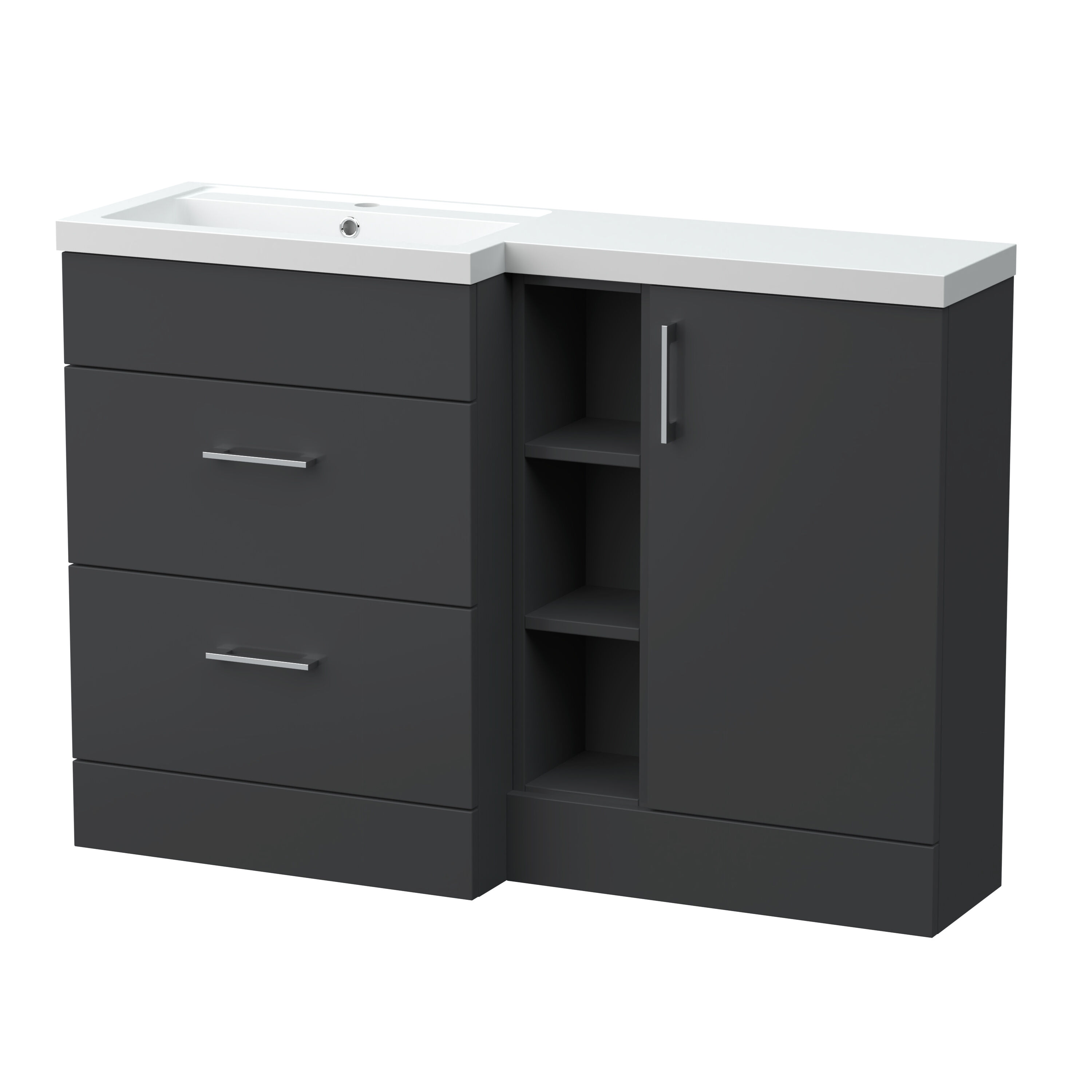 Nuie Lux Krest 1200mm Full Depth Combination Unit & Basin - Left Hand - Soft Black