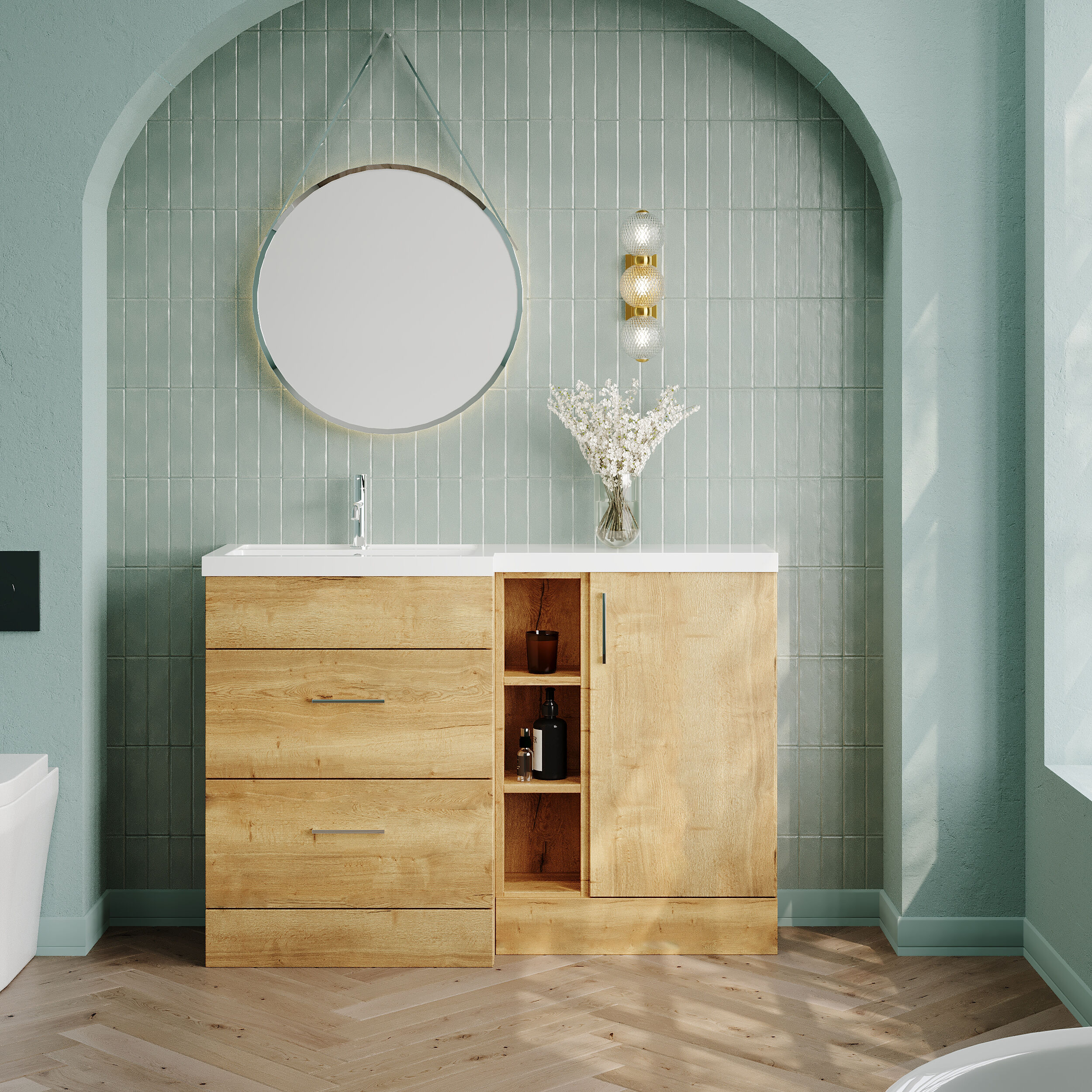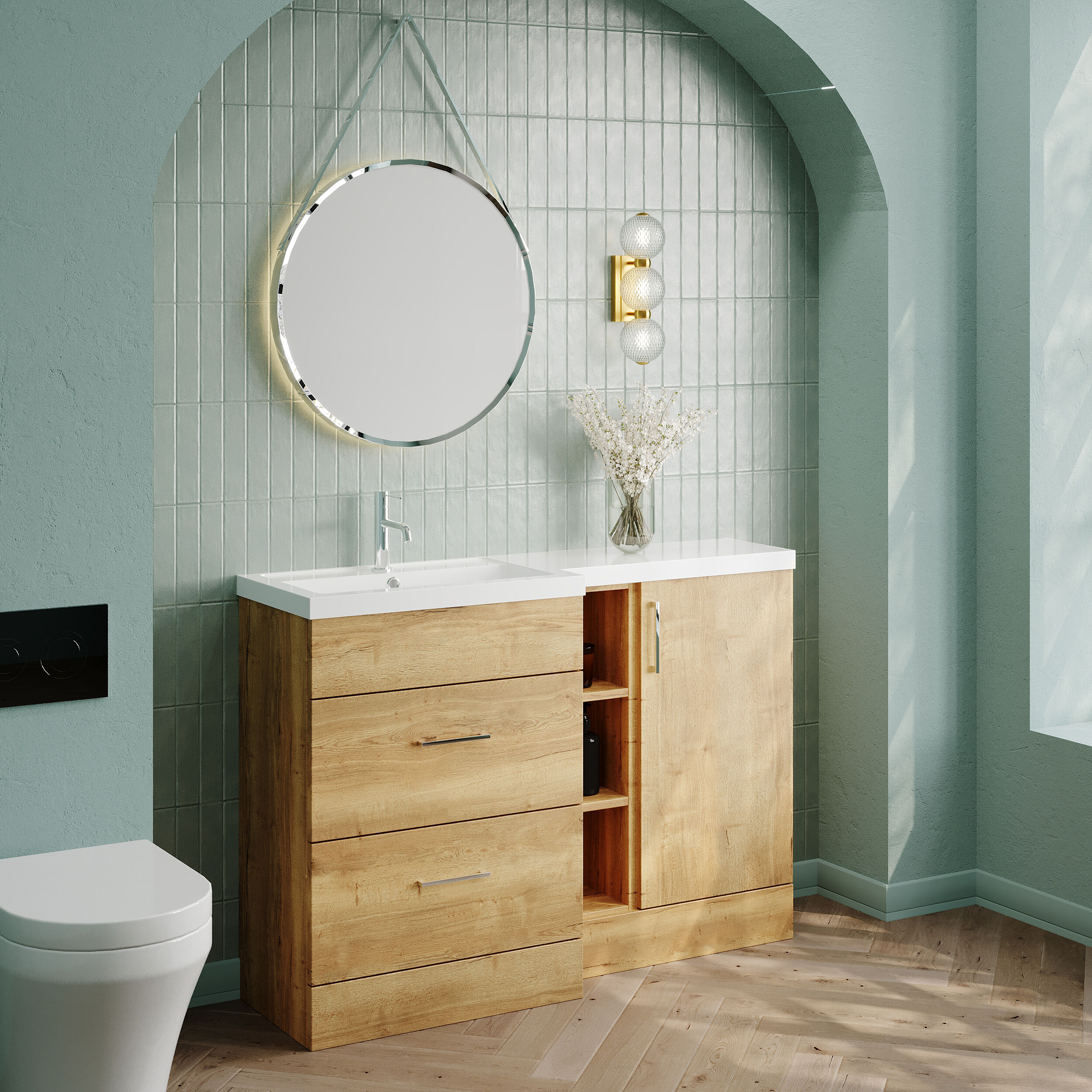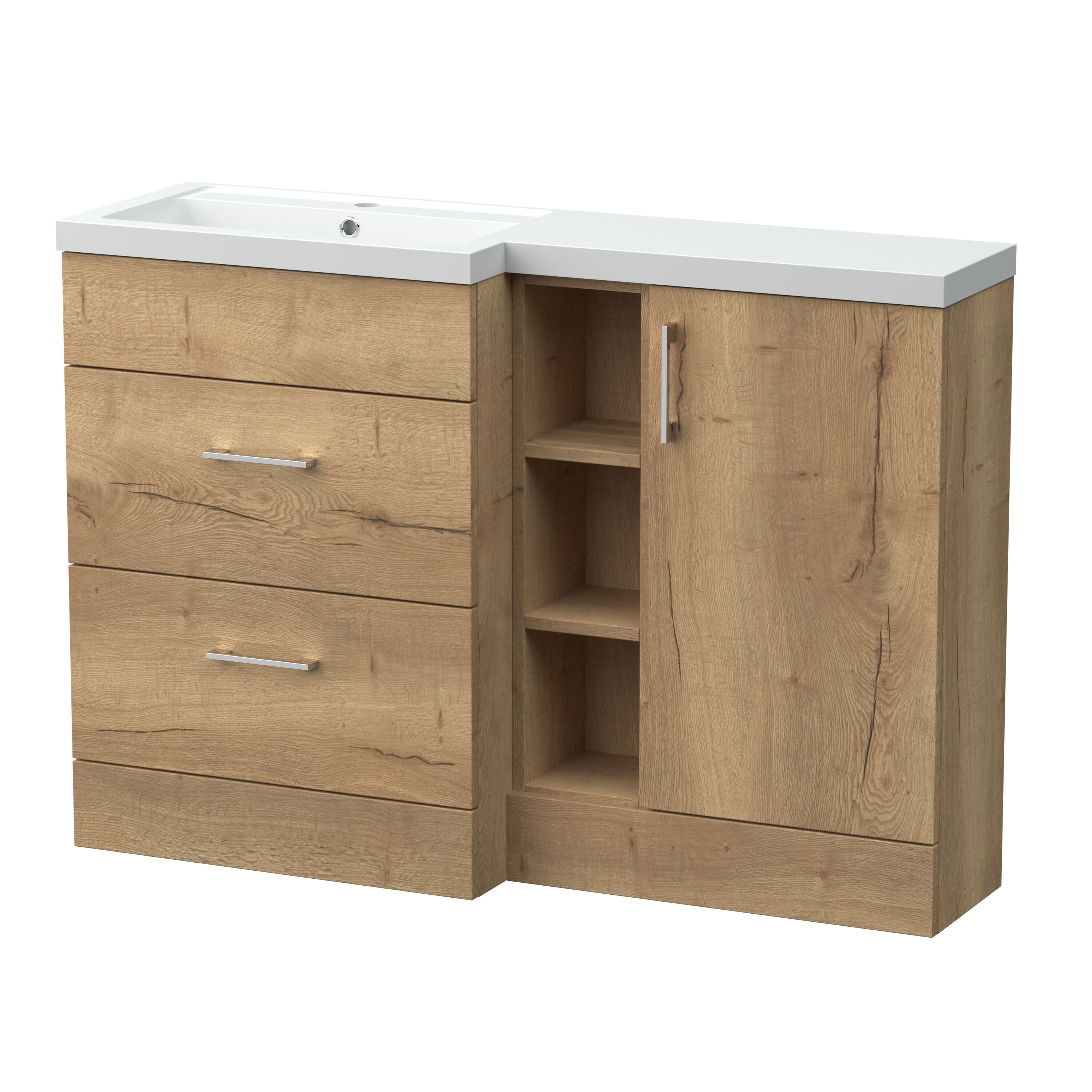 Nuie Lux Krest 1200mm Full Depth Combination Unit & Basin - Left Hand - Autumn Oak