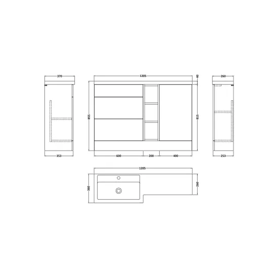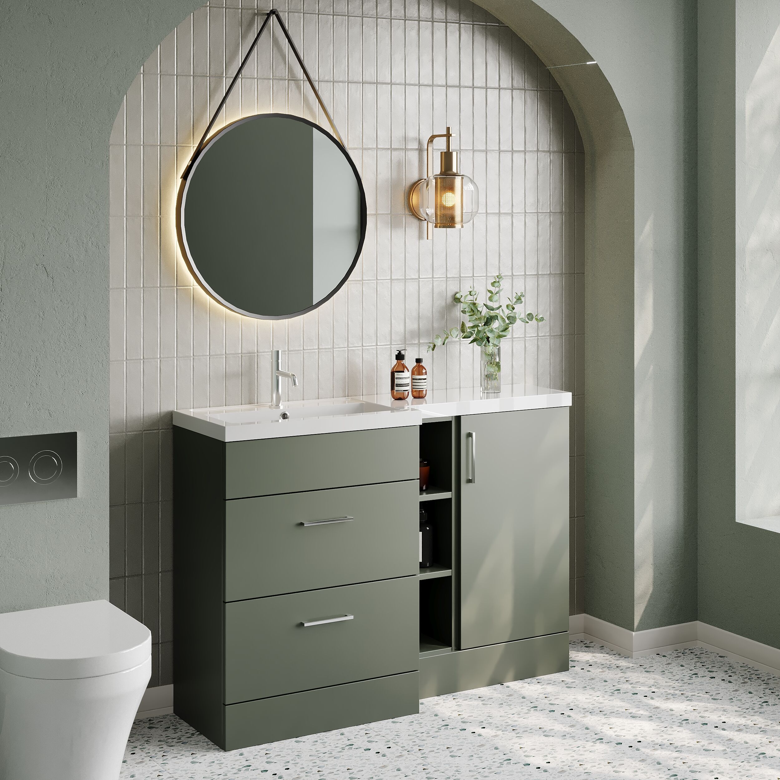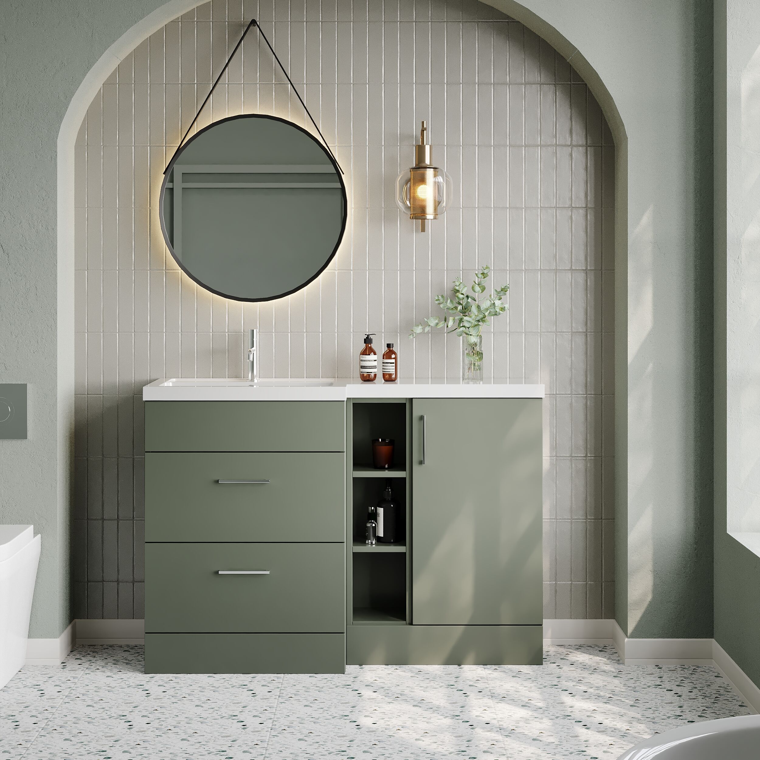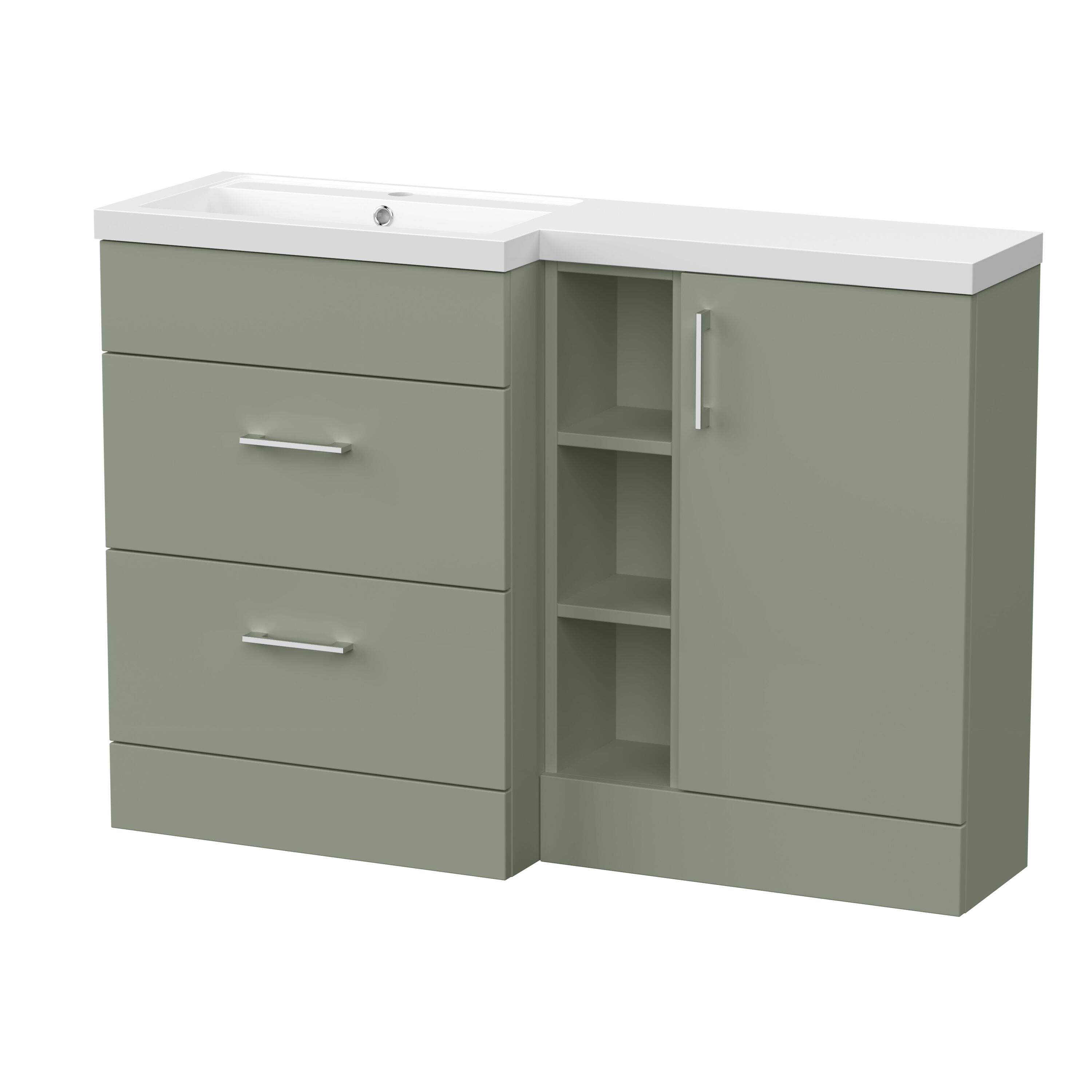 Nuie Lux Krest 1200mm Fern Green Left Hand Combination Unit & Basin With Soft Close Doors & Drawers