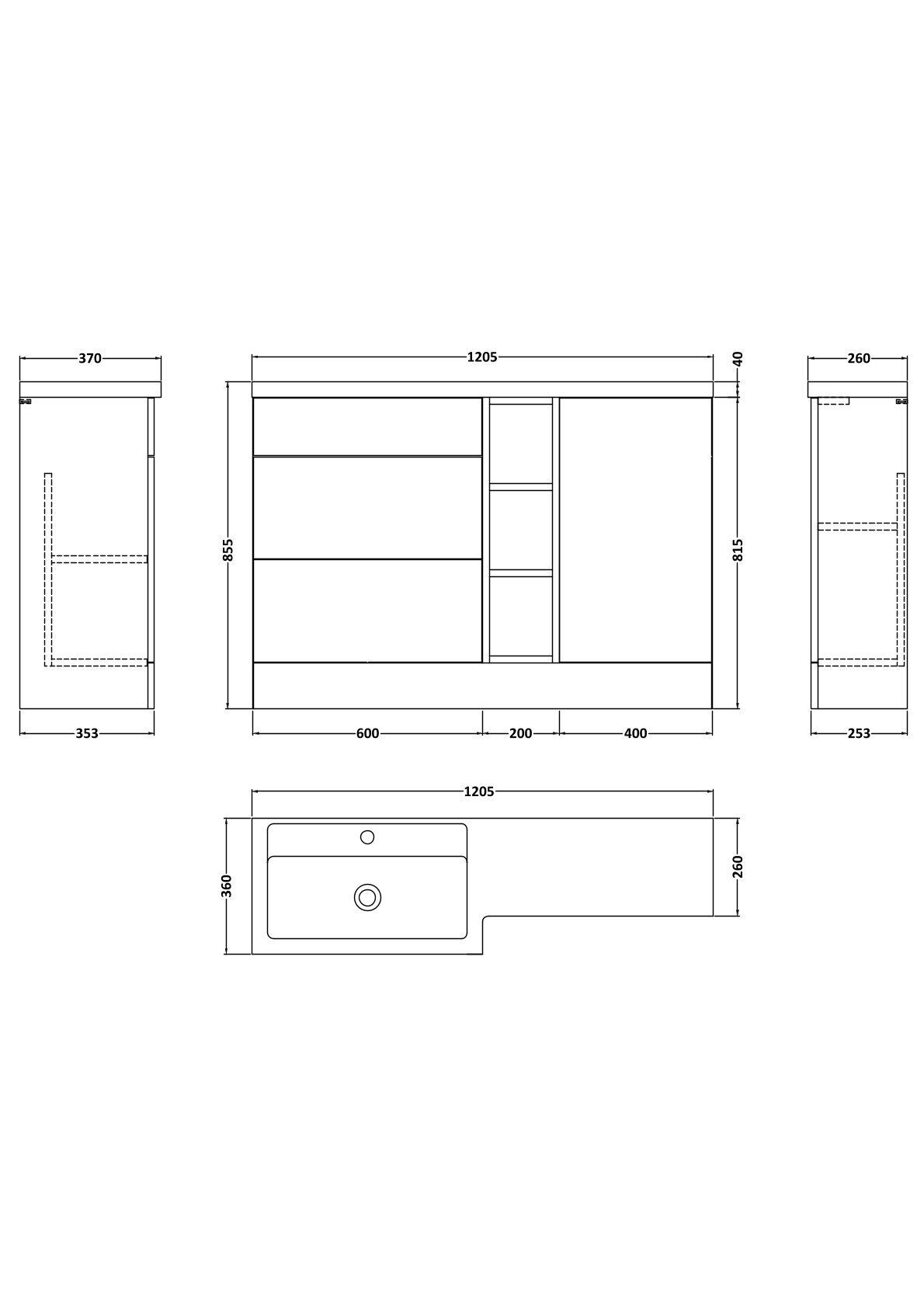 Supplied with luxury polymarble left-hand basin, predrilled with 1 tap hole and high quality contemporary handles
