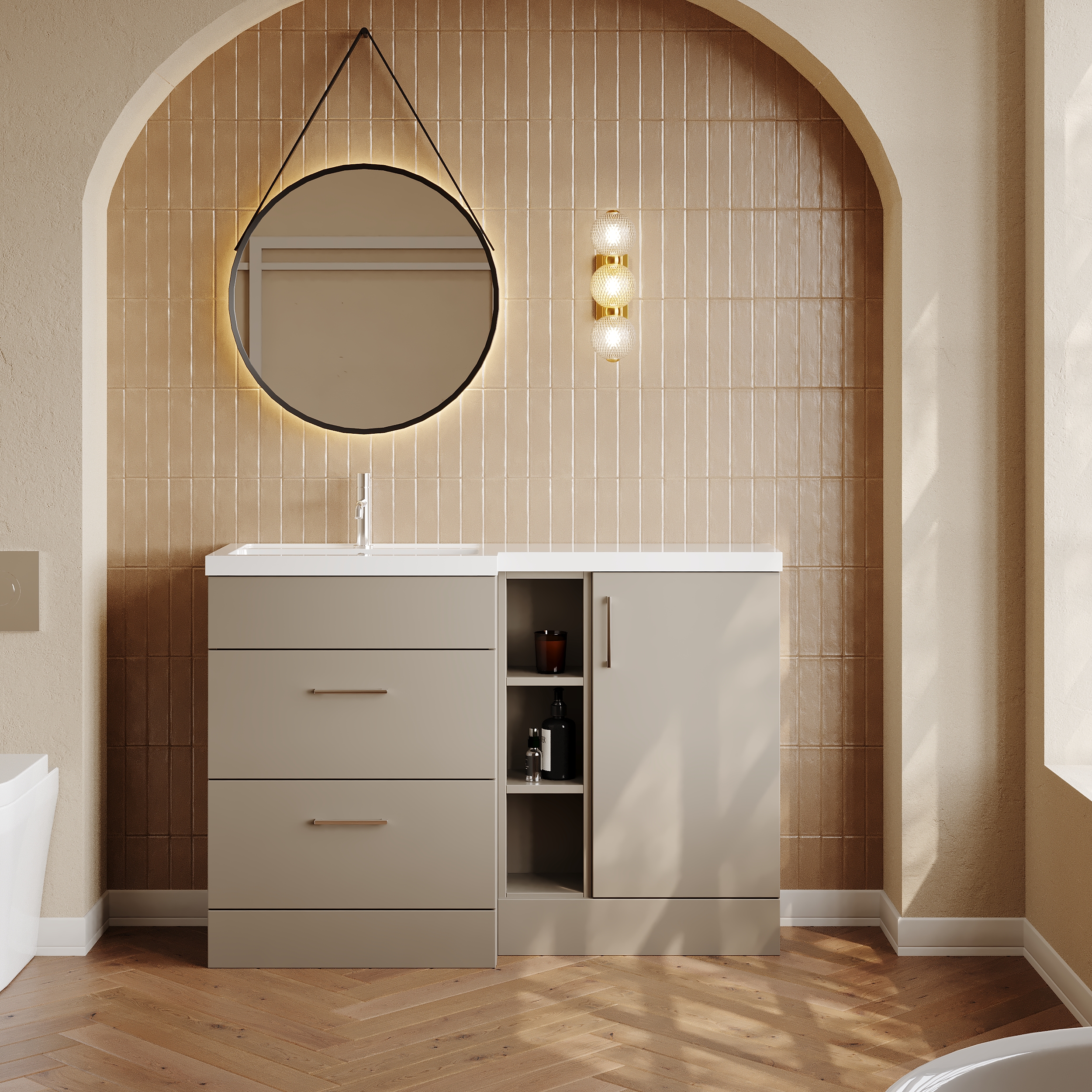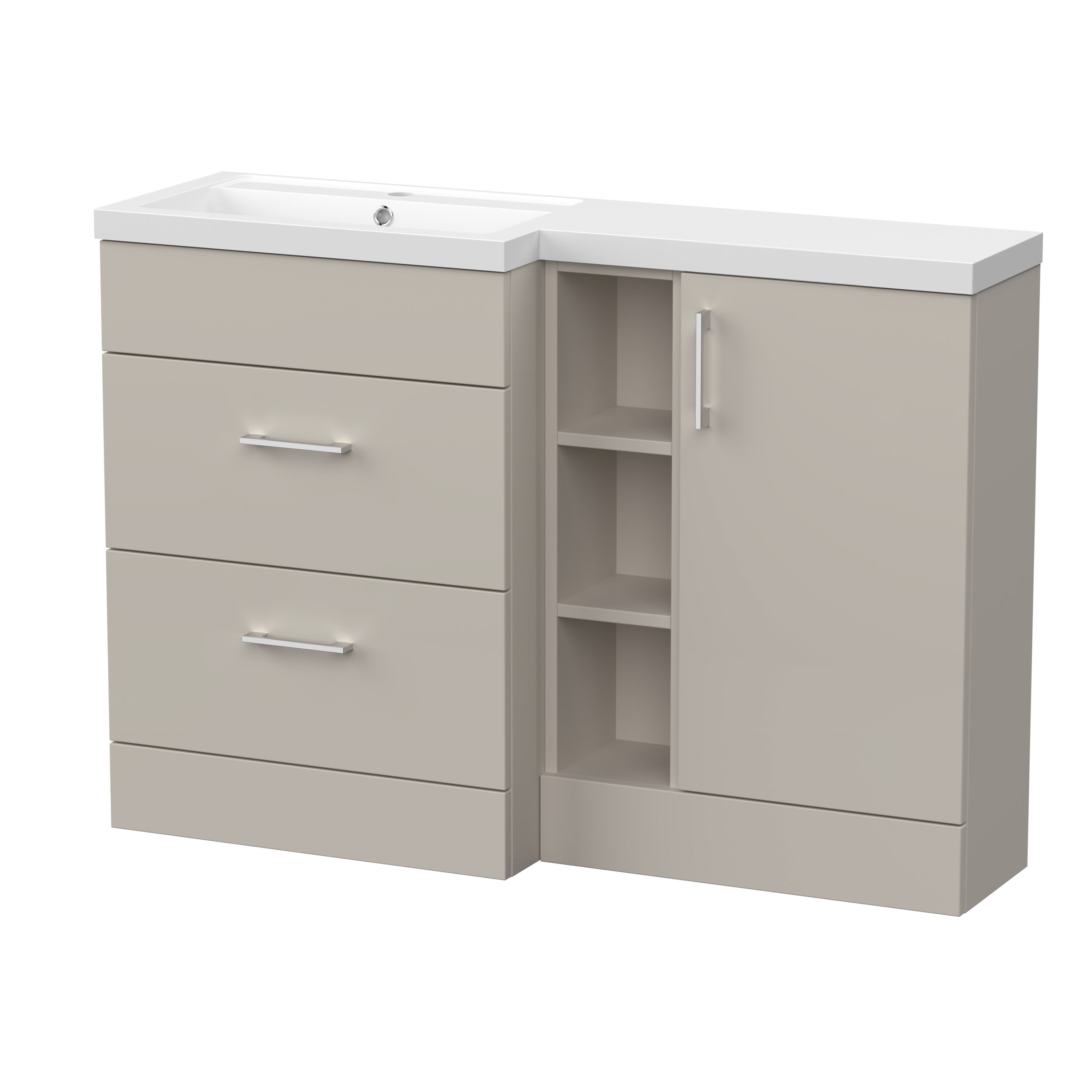 Nuie Lux Krest 1200mm Full Depth Combination Unit & Basin - Left Hand - Pebble Grey