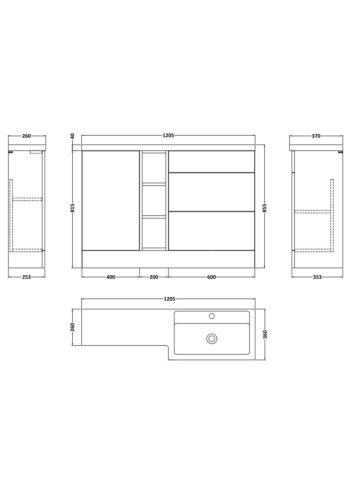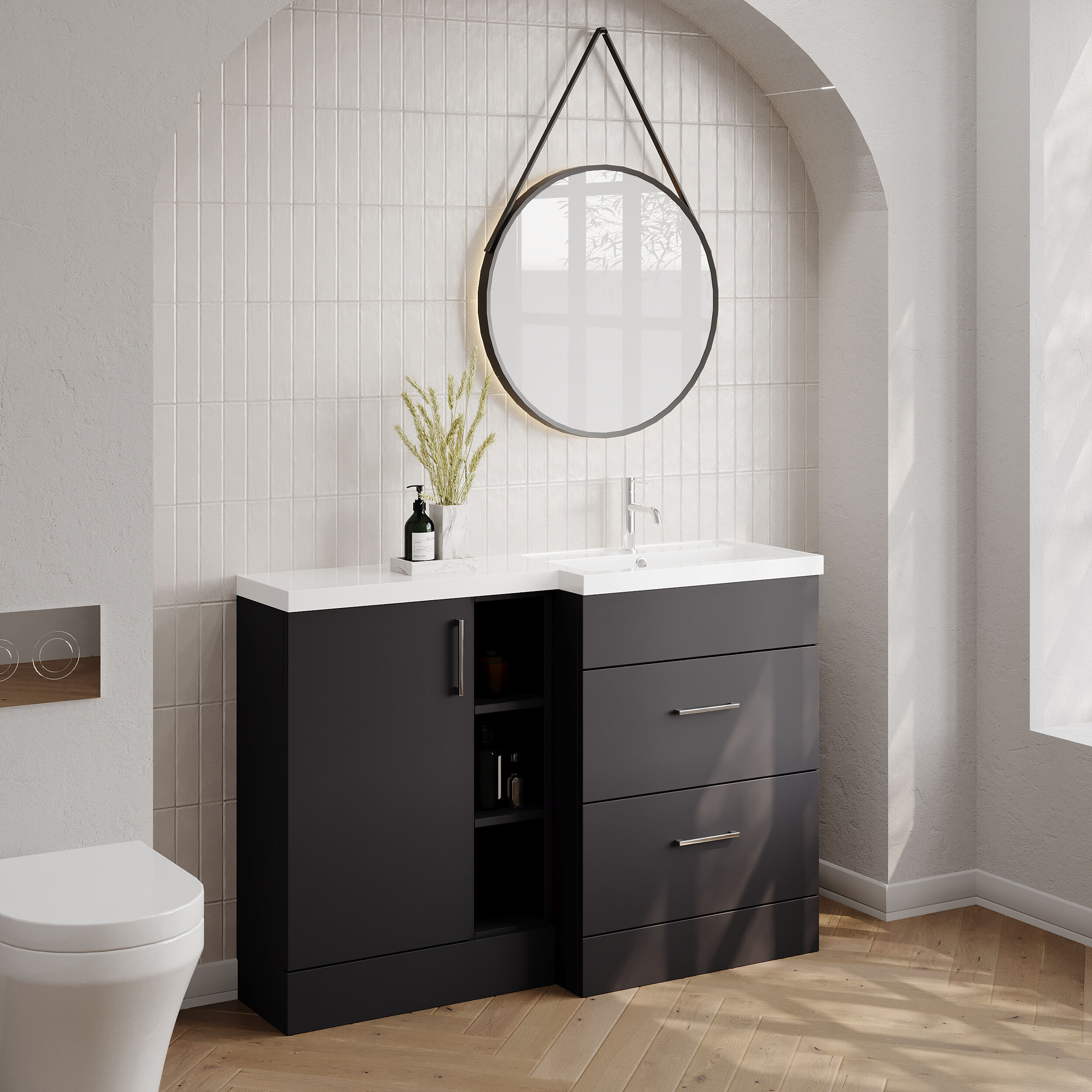 Nuie Lux Krest 1200mm Full Depth Combination Unit & Basin - Right Hand - Soft Black