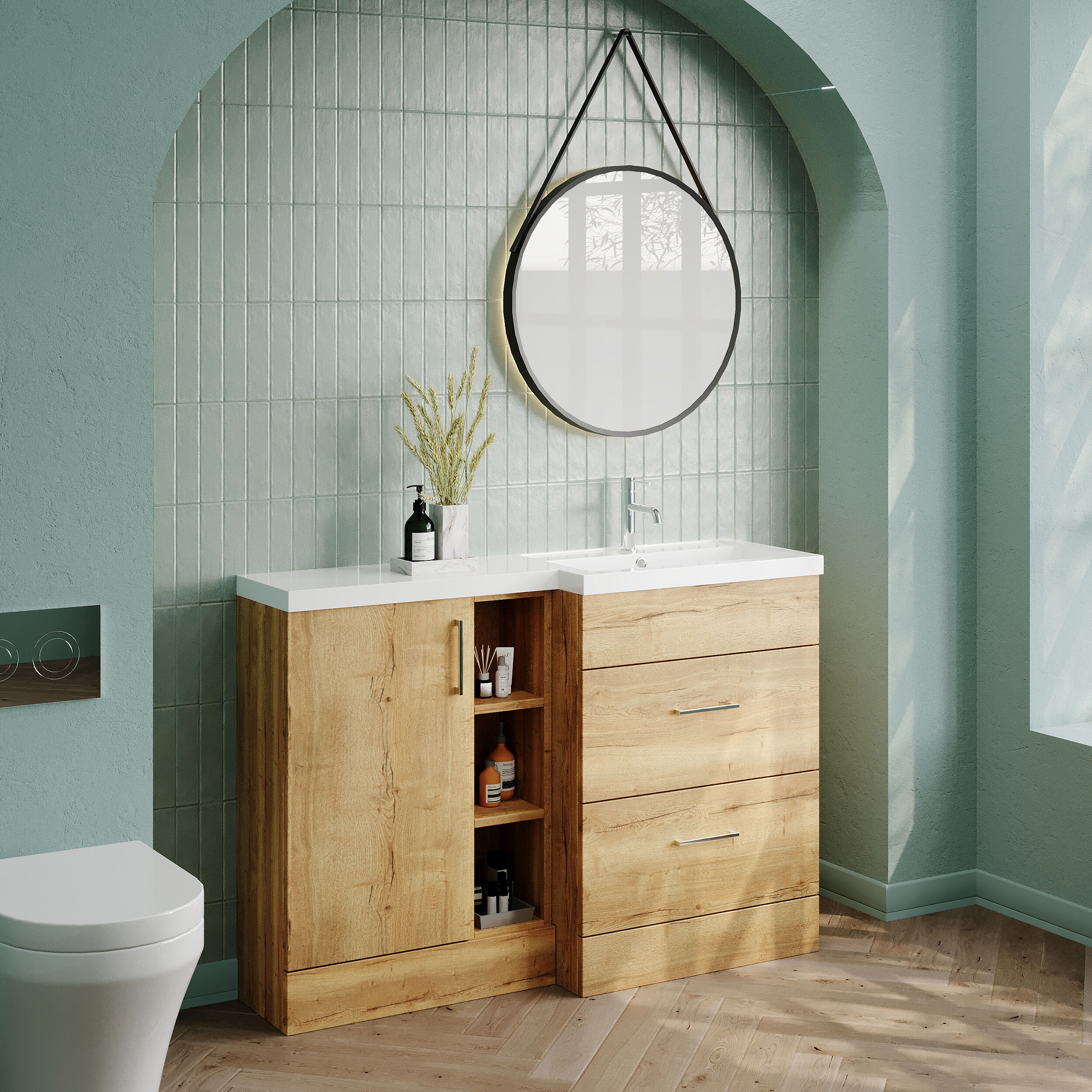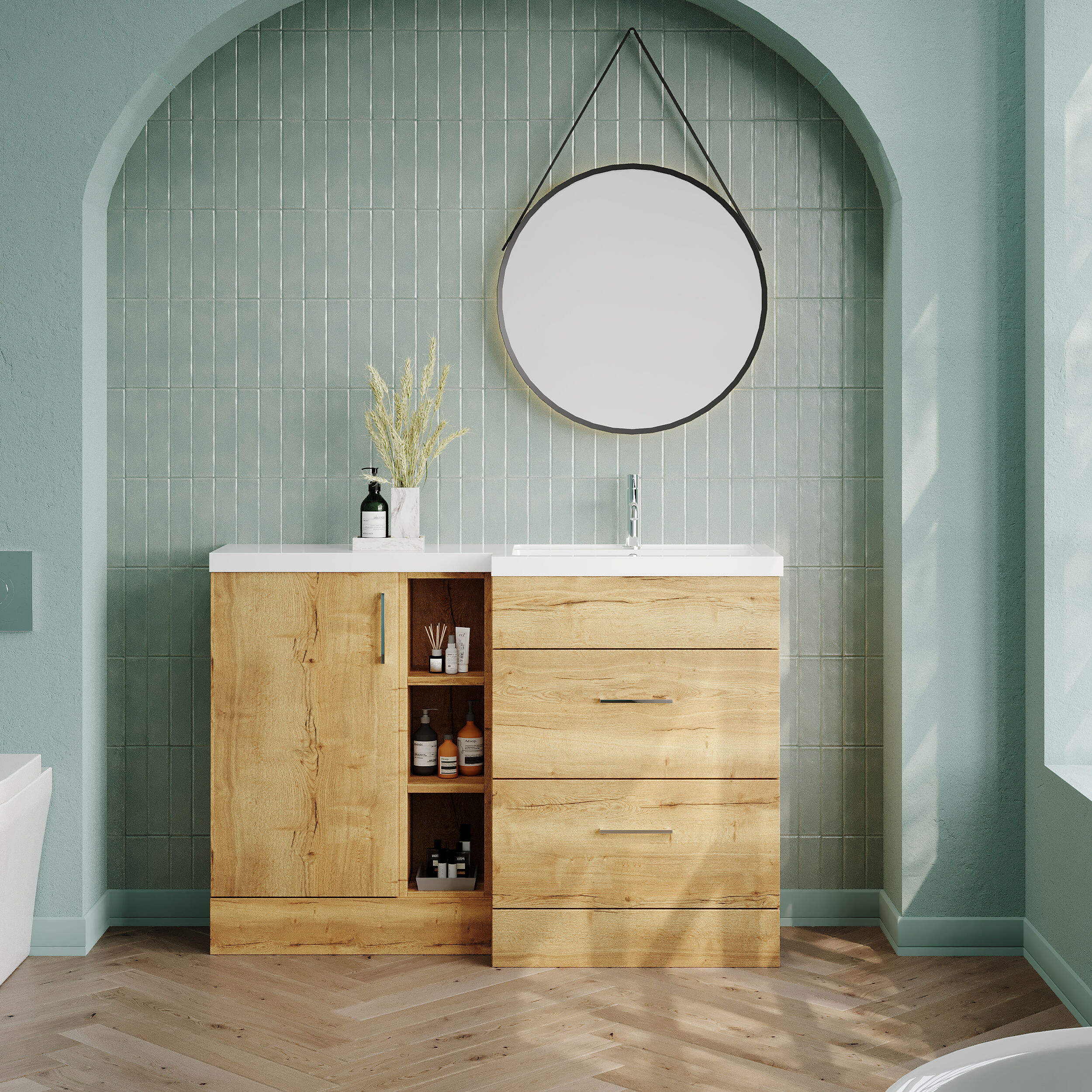 Nuie Lux Krest 1200mm Full Depth Combination Unit & Basin - Right Hand - Autumn Oak