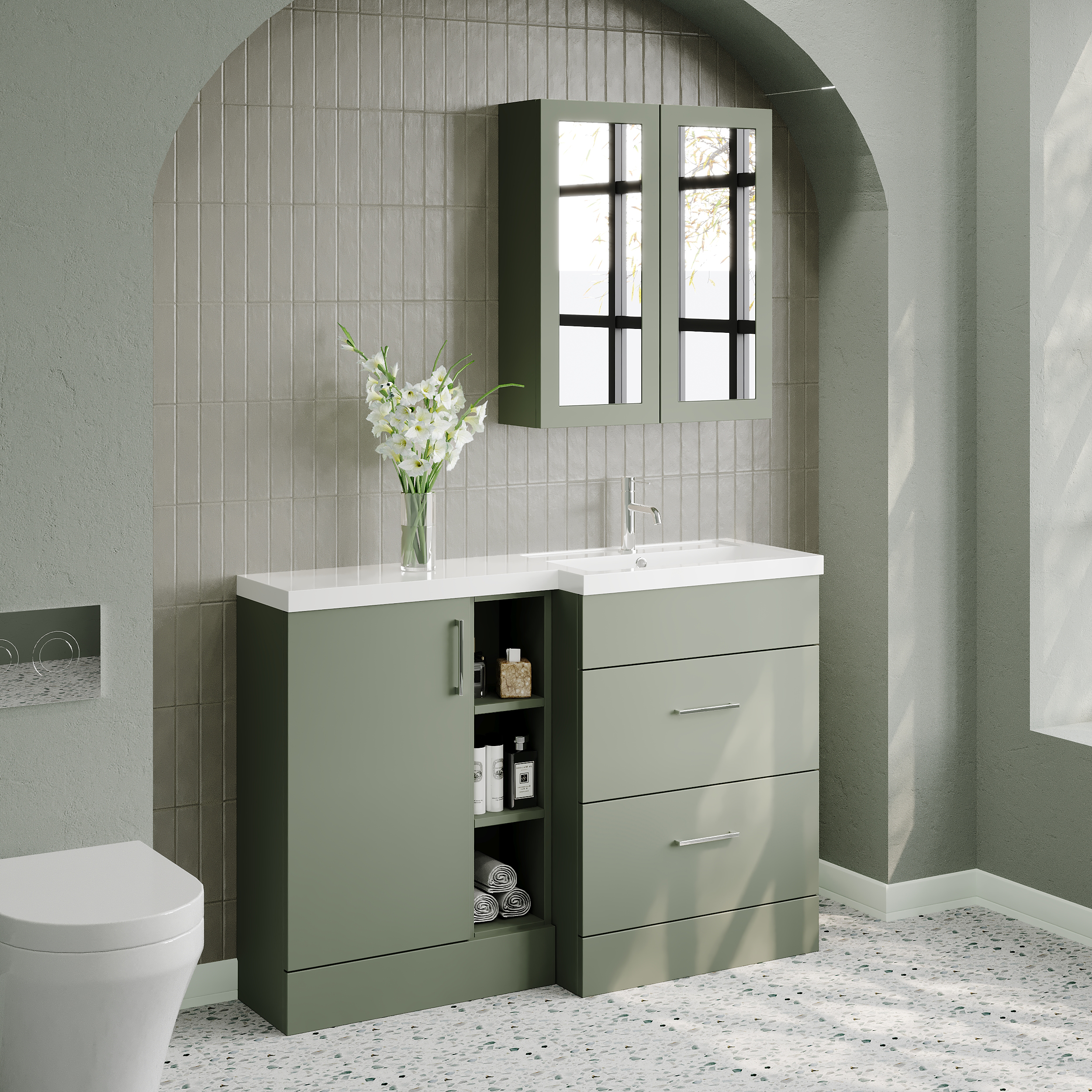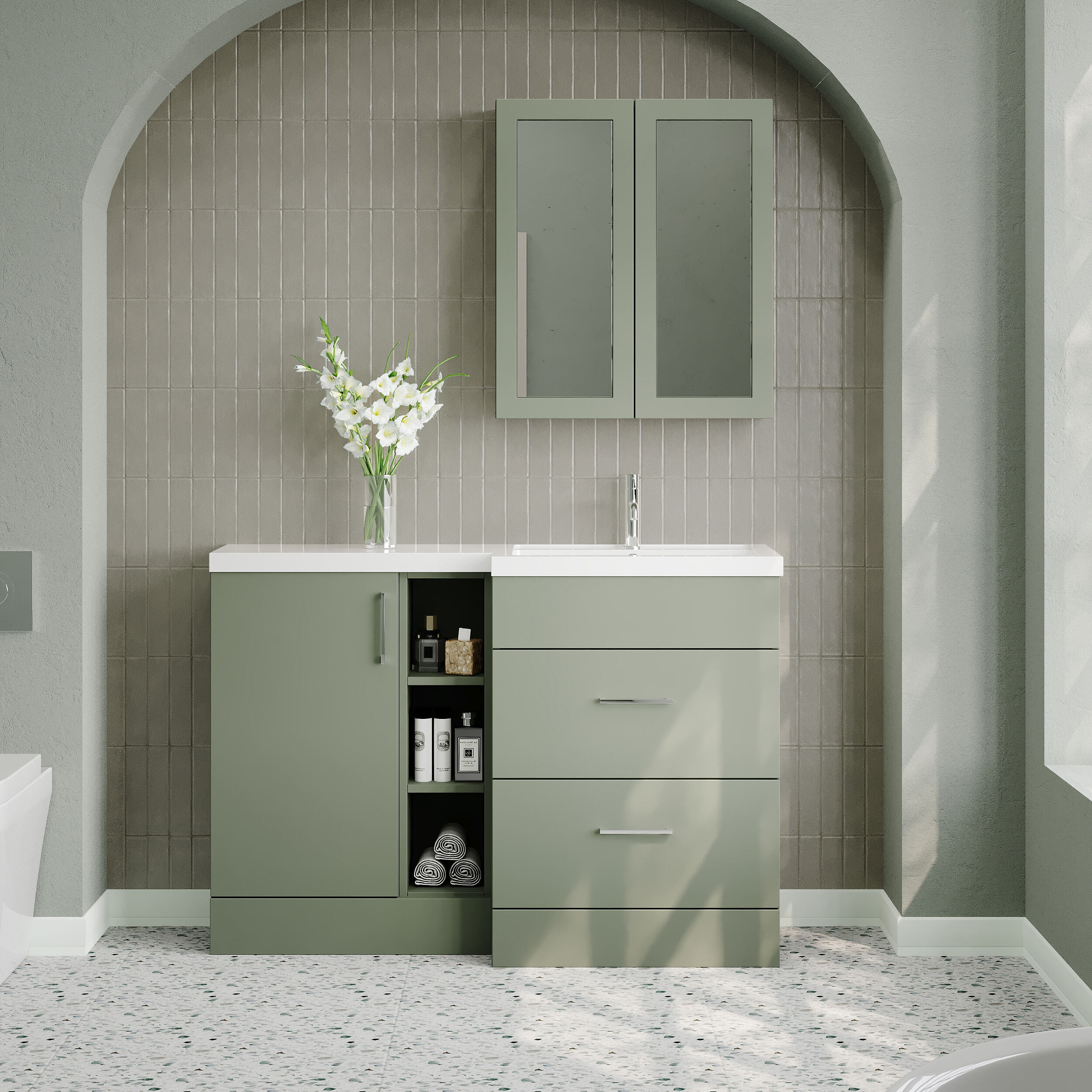 Nuie Lux Krest 1200mm Full Depth Combination Unit & Basin - Right Hand - Fern Green