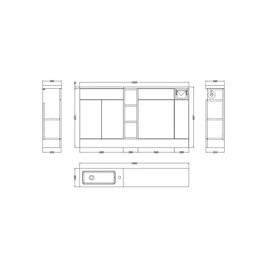 Nuie Lux Krest 1500mm Soft Black Floor Standing Combination Unit with Basin, Rigid, Soft Close