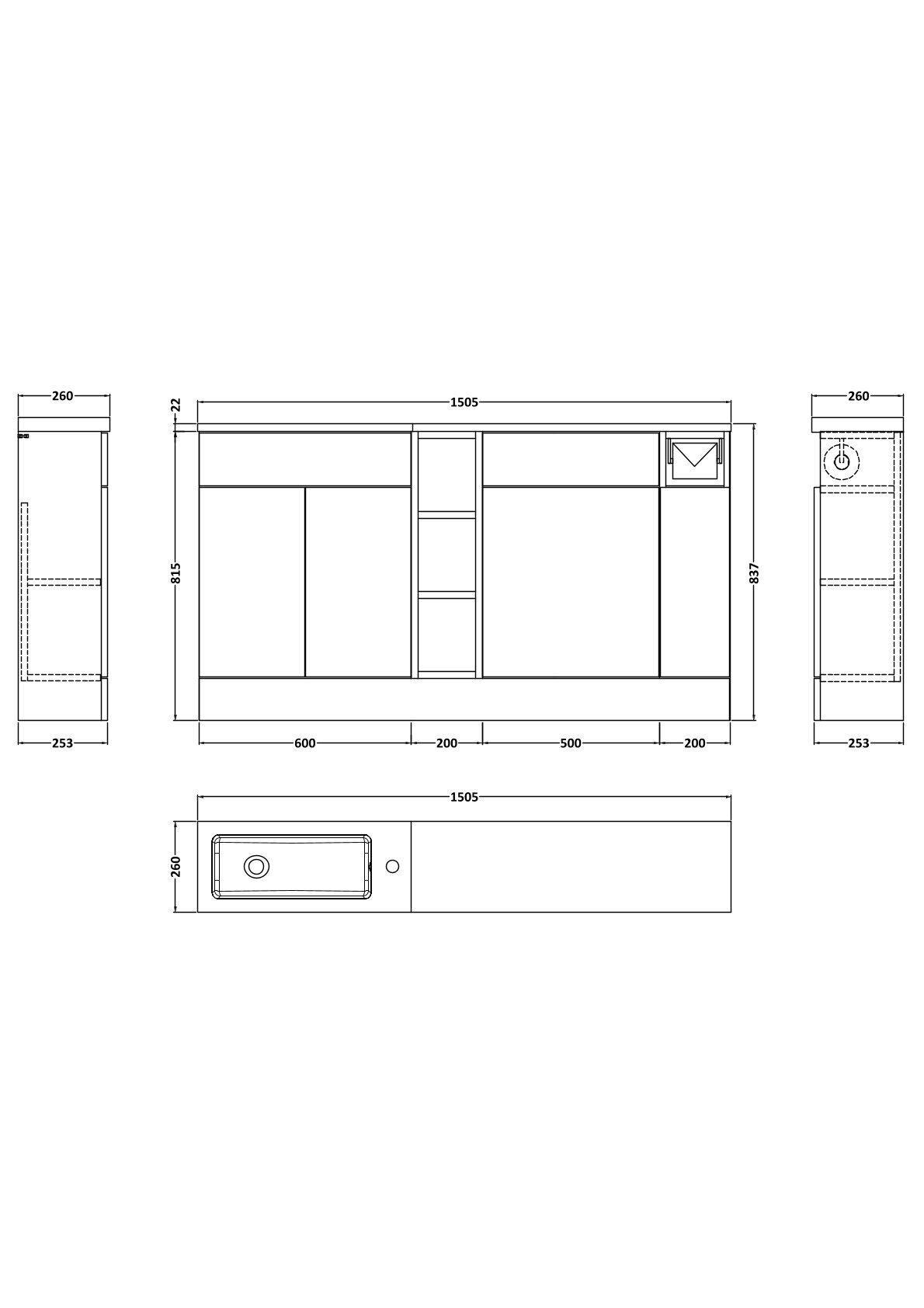Nuie Lux Krest 1500mm Compact Combination Unit & Basin - Pebble Grey