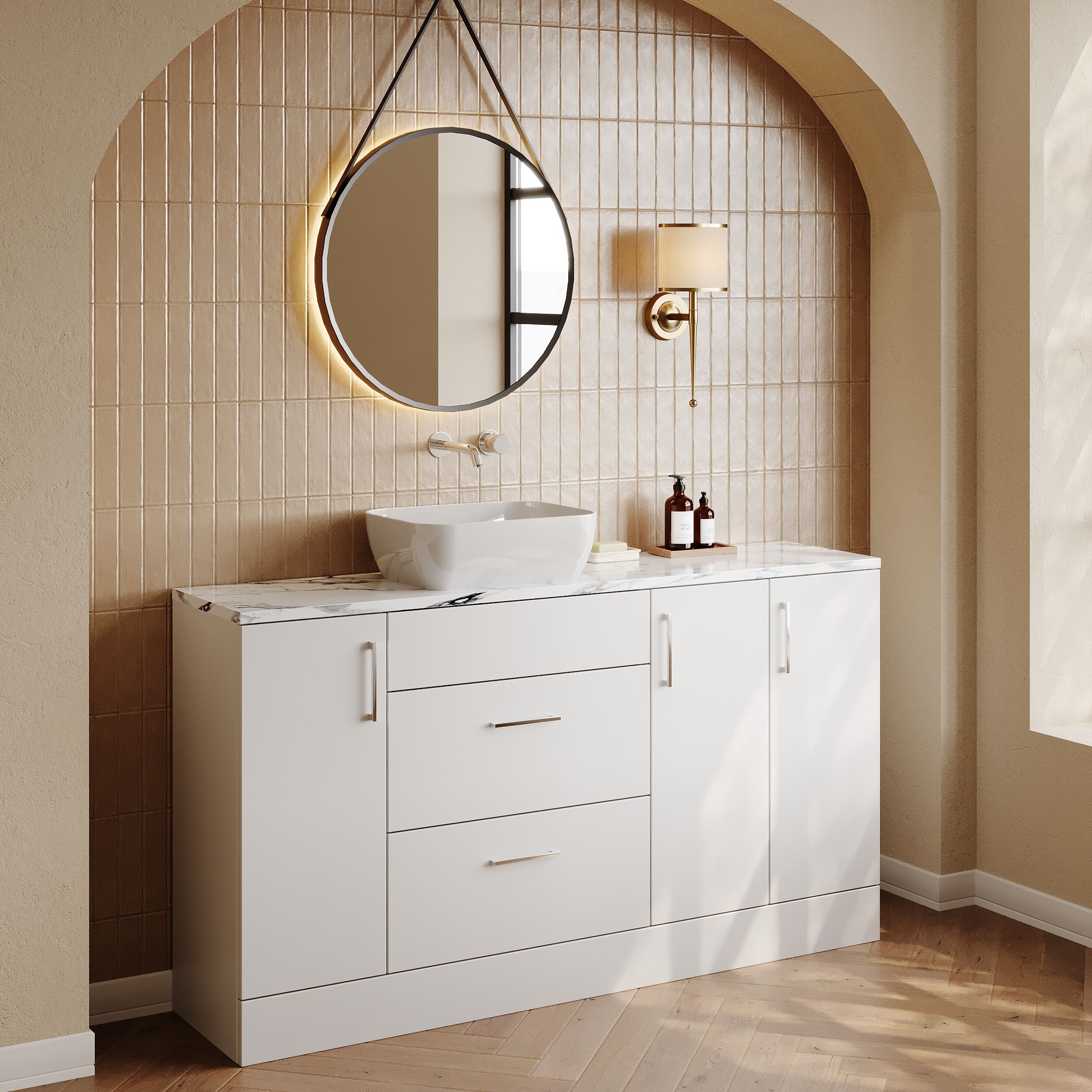 Nuie Lux Krest 1500mm Combination Unit & Basin With Handles