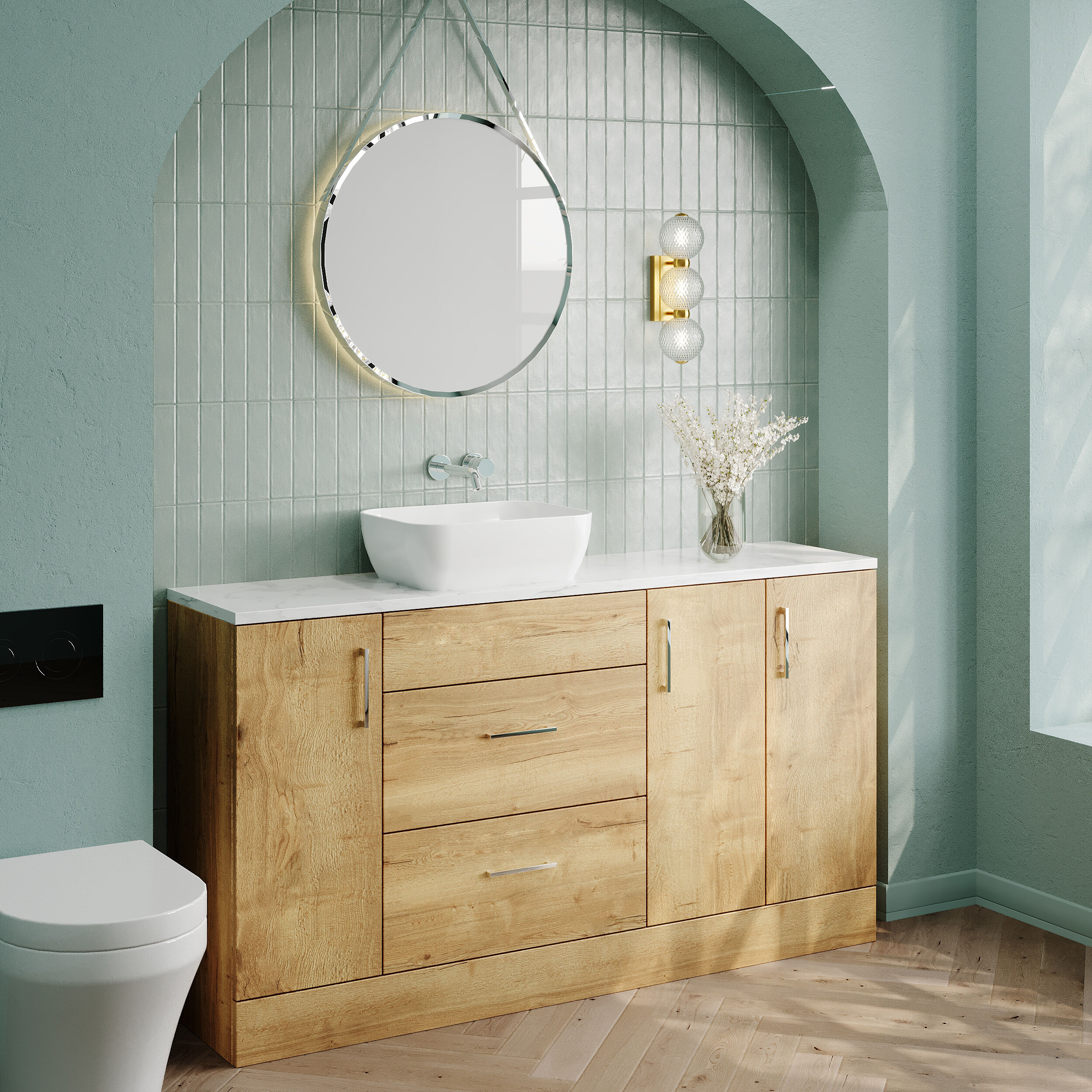 Nuie Lux Krest 1500mm Full Depth Combination Unit & Basin - Autumn Oak