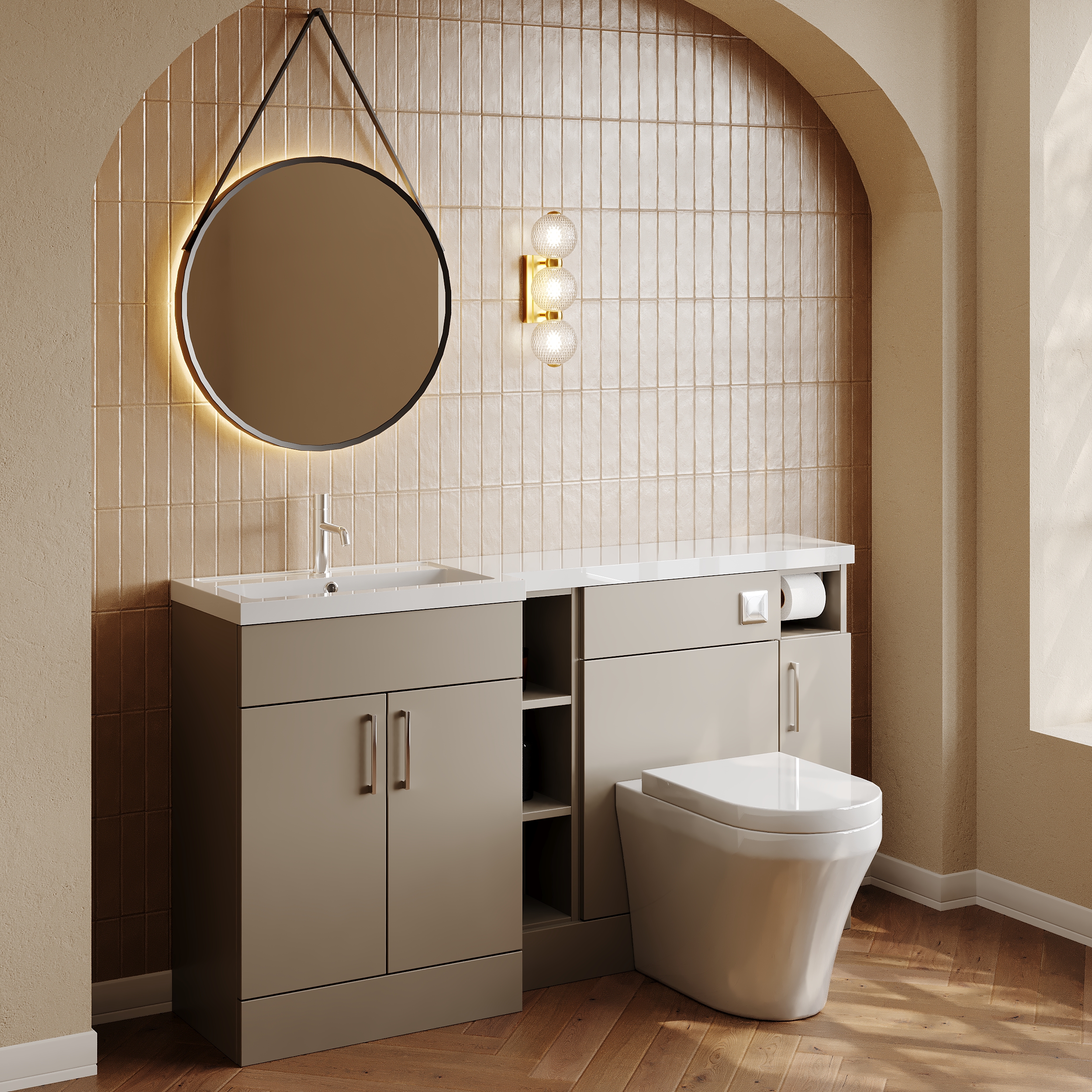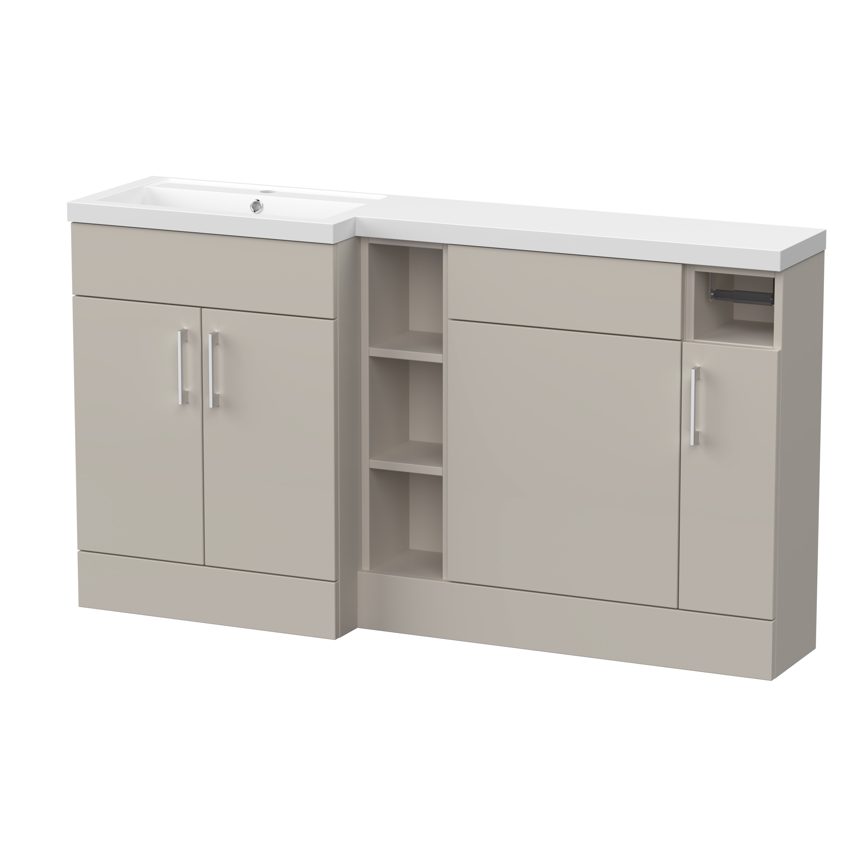 Nuie Lux Krest 1500mm Full Depth Combination Unit & Basin - Left Hand - Pebble Grey