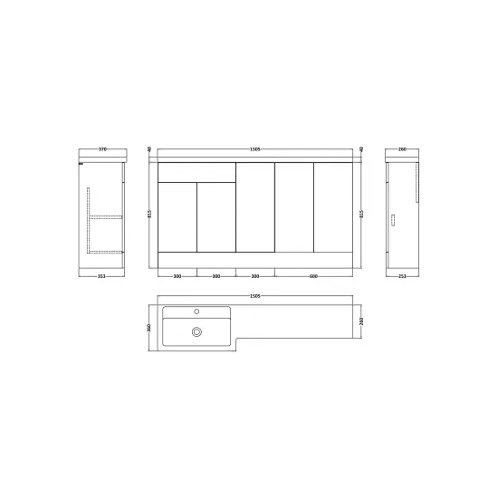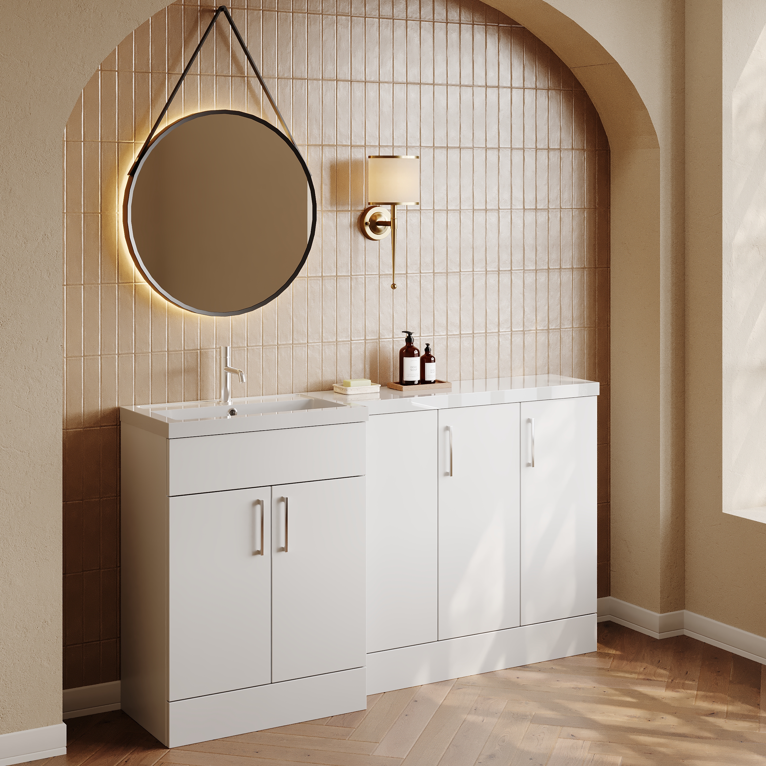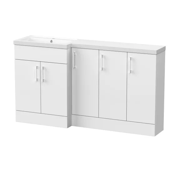 Nuie Lux Krest 1500mm Full Depth Combination Unit & L-Shaped Basin - Left Hand - Matt White
