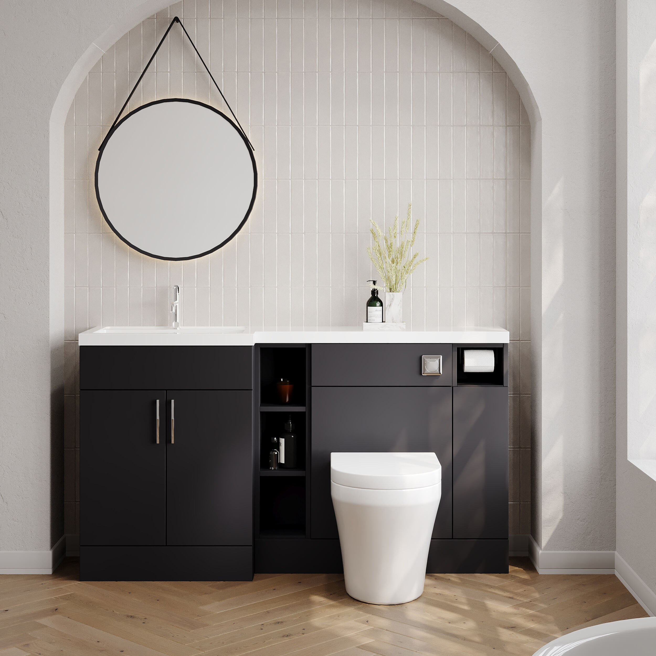 Nuie Lux Krest 1500mm Full Depth Combination Unit & L-Shaped Basin - Left Hand - Soft Black