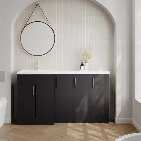 Nuie Lux Krest 1500mm Full Depth Combination Unit & L-Shaped Basin - Left Hand - Soft Black