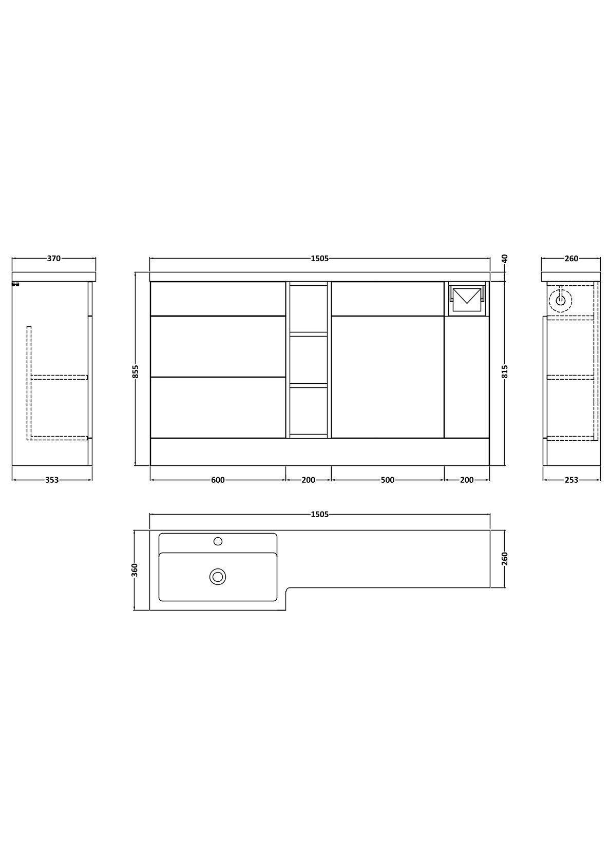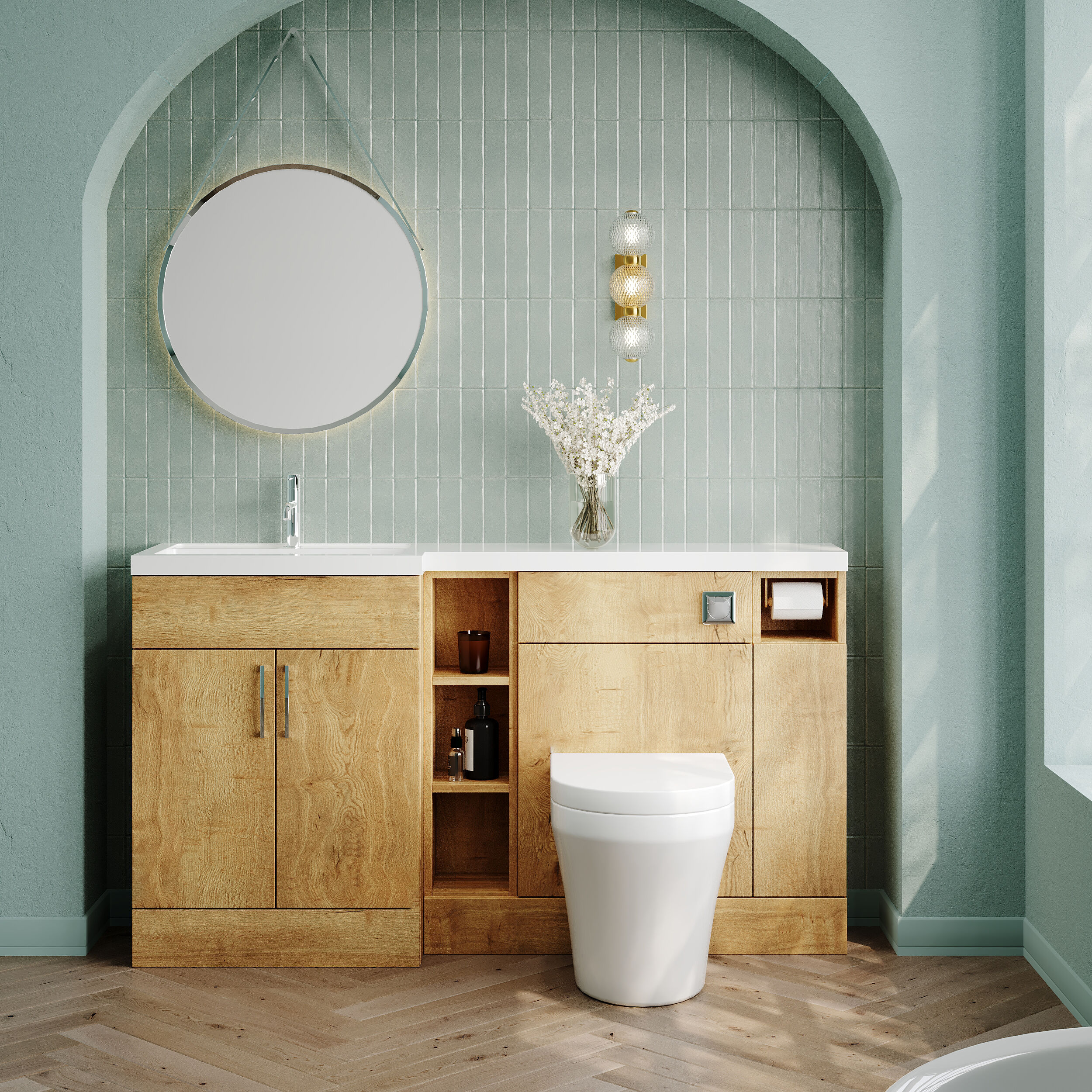 Nuie Lux Krest 1500mm Full Depth Combination Unit & L-Shaped Basin - Left Hand - Autumn Oak