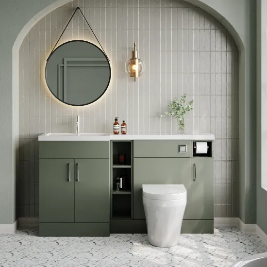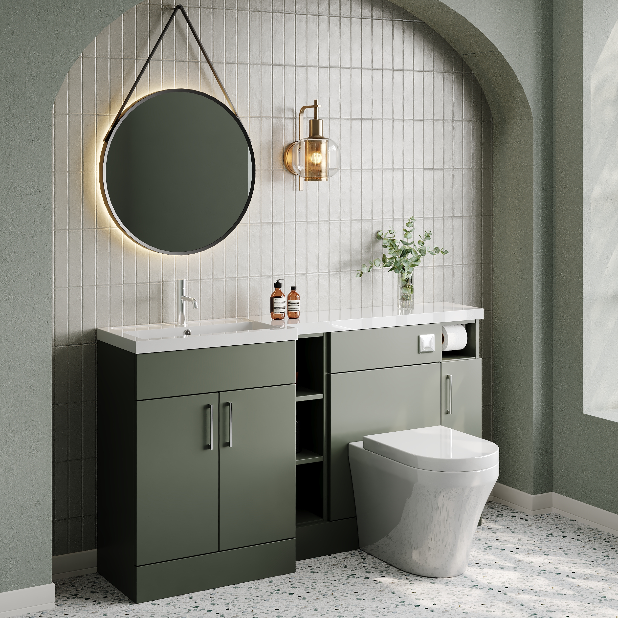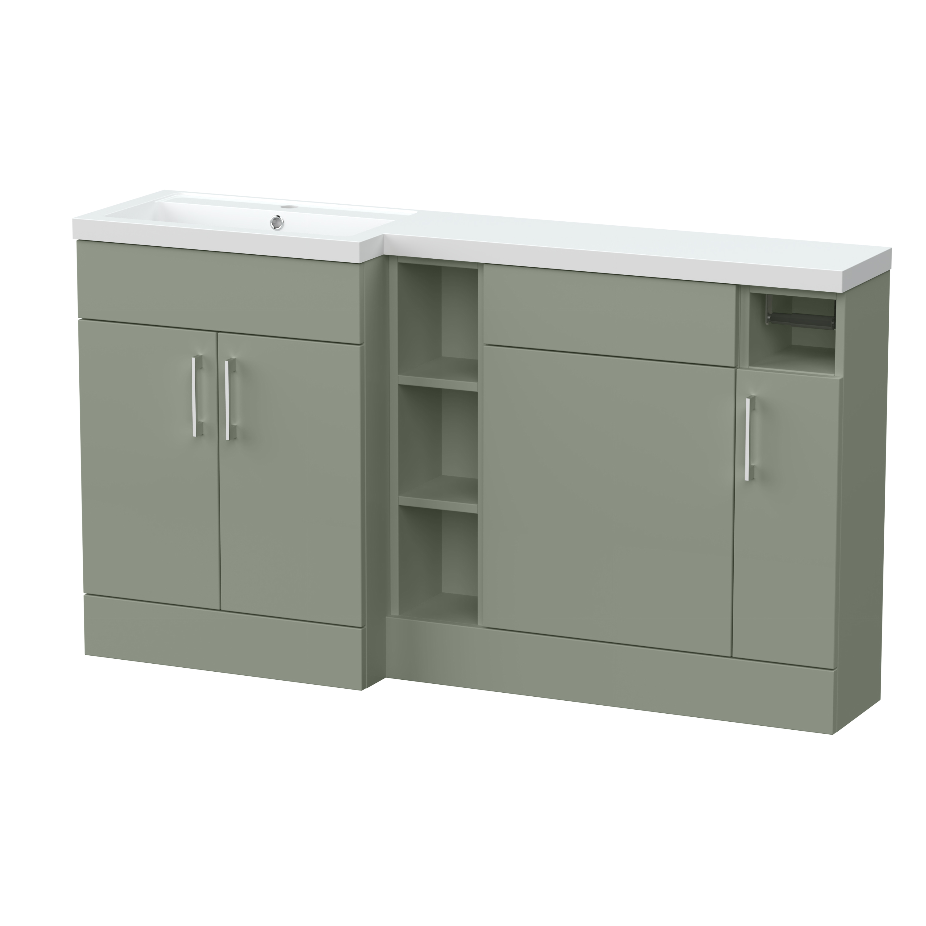 Nuie Lux Krest 1500mm Full Depth Combination Unit & L-Shaped Basin - Left Hand - Fern Green