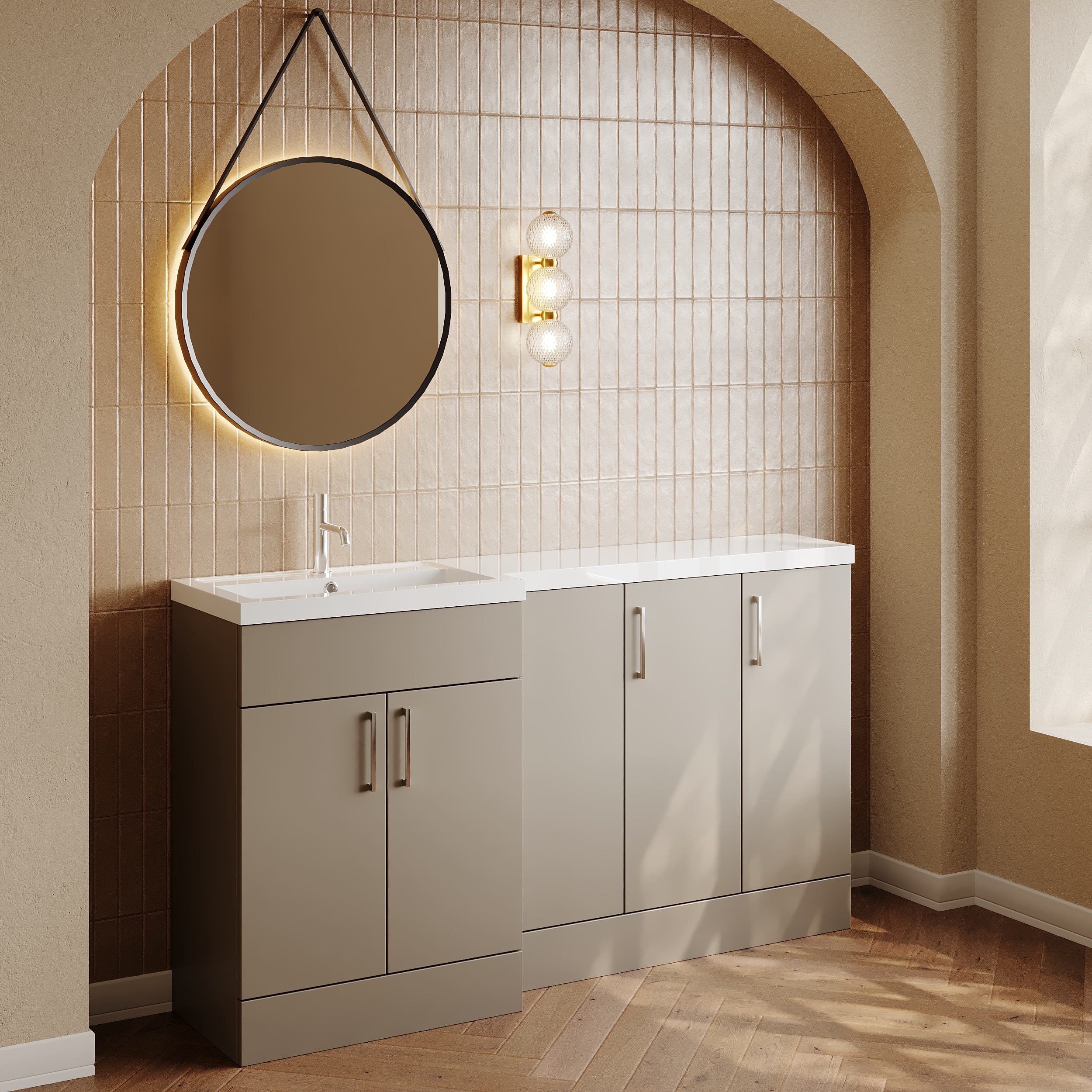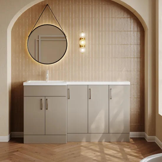 Nuie Lux Krest 1500mm Full Depth Combination Unit & L-Shaped Basin - Left Hand - Pebble Grey