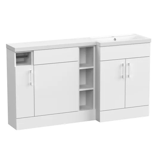 Nuie Lux Krest 1500mm Full Depth Combination Unit & L-Shaped Basin - Right Hand - Matt White