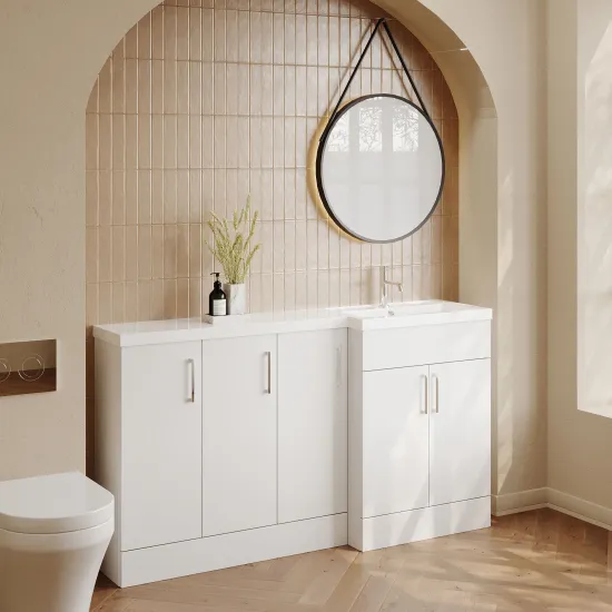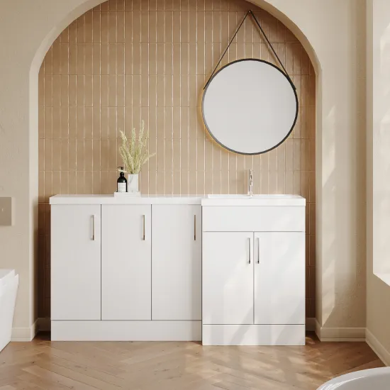 Nuie Lux Krest 1500mm Full Depth Combination Unit & L-Shaped Basin - Right Hand - Matt White