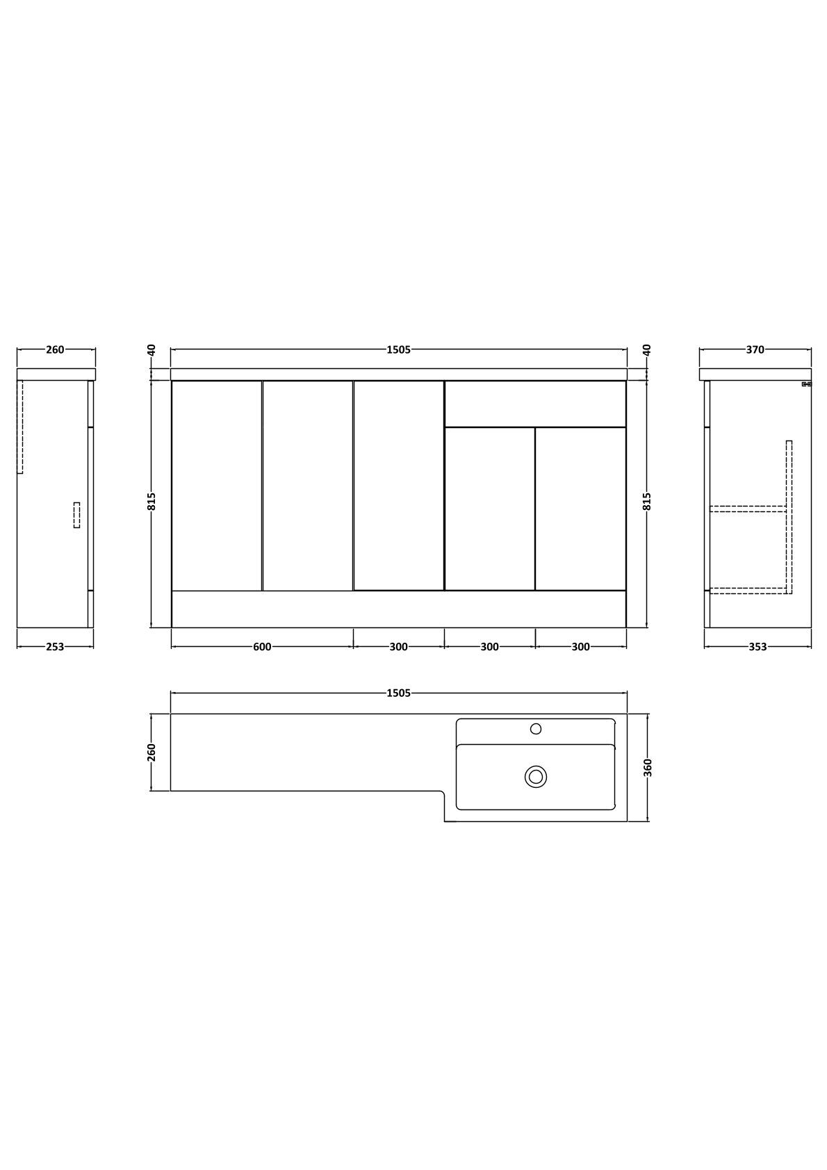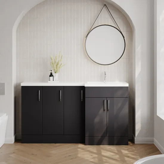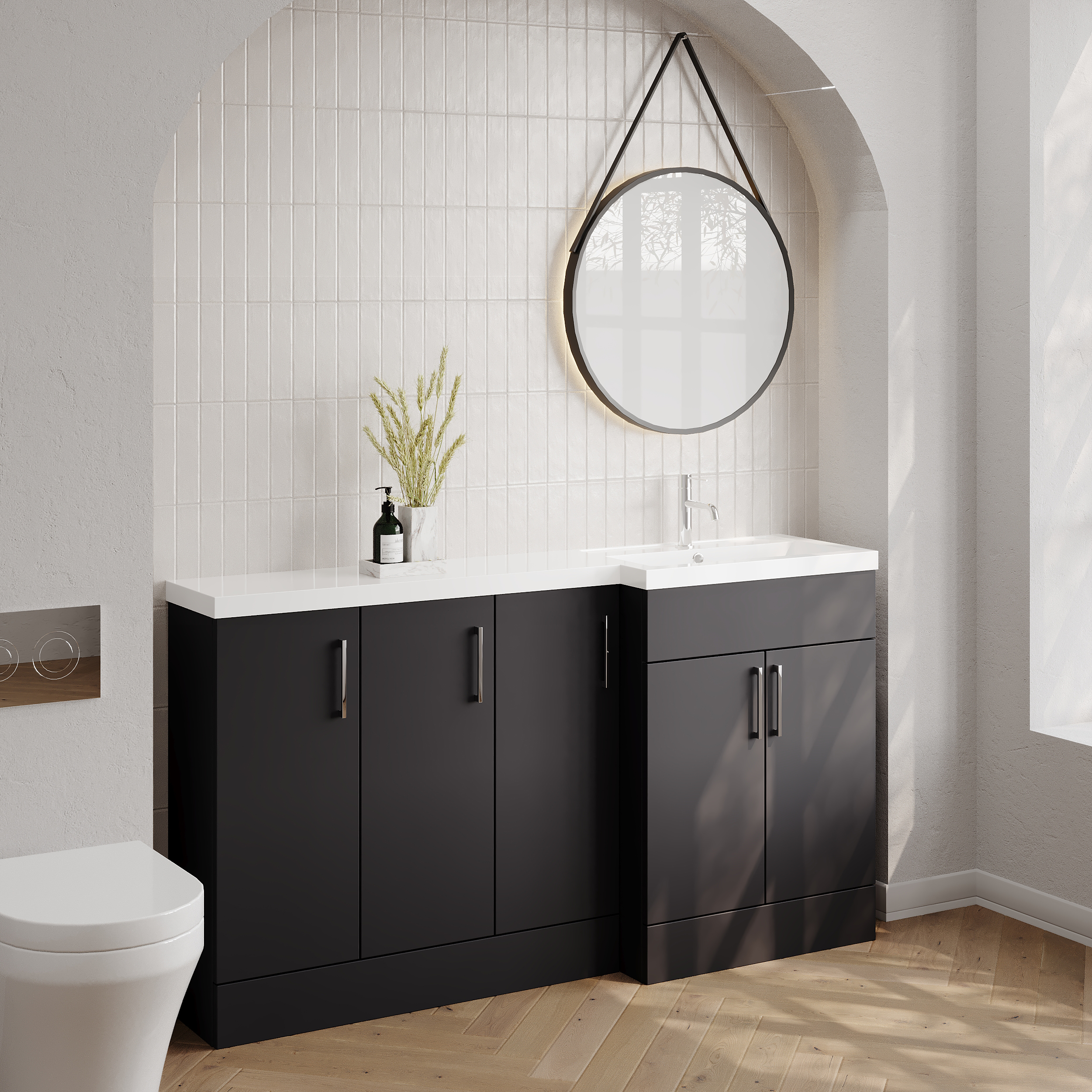 Nuie Lux Krest 1500mm Full Depth Combination Unit & L-Shaped Basin - Right Hand - Soft Black