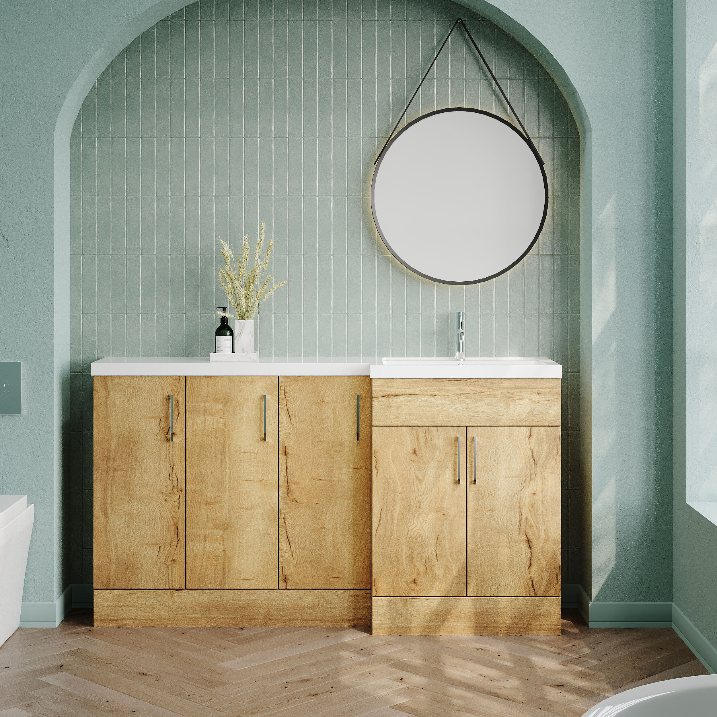 Nuie Lux Krest 1500mm Right Hand Autumn Oak Combination Unit & L-Shaped Basin