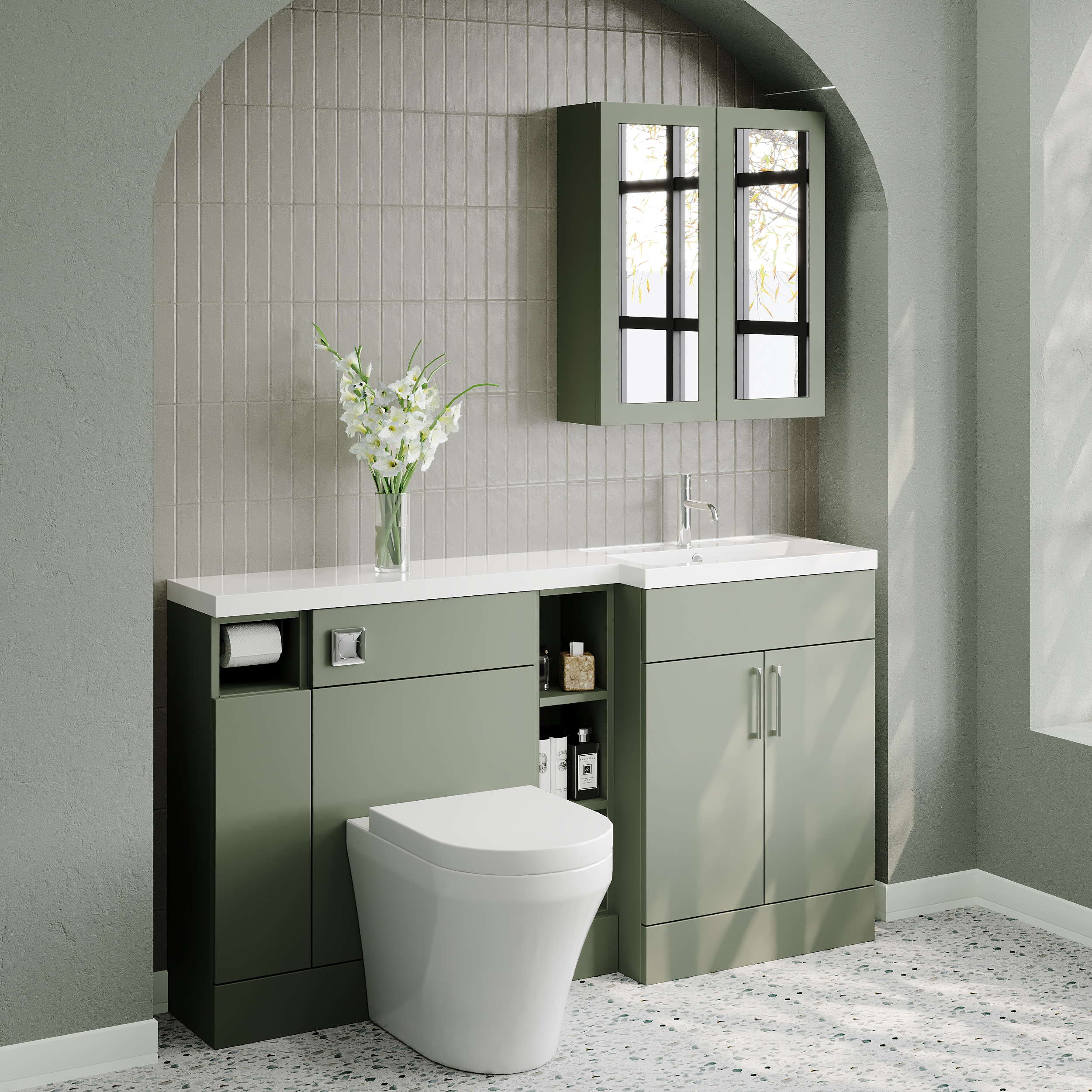 Nuie Lux Krest 1500mm Full Depth Combination Unit & L-Shaped Basin - Right Hand - Fern Green