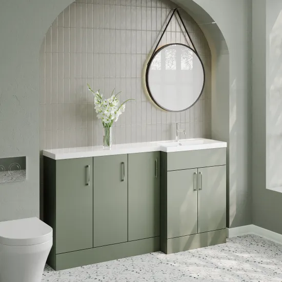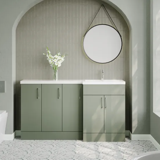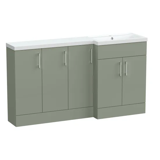 Nuie Lux Krest 1500mm Full Depth Combination Unit & L-Shaped Basin - Right Hand - Fern Green