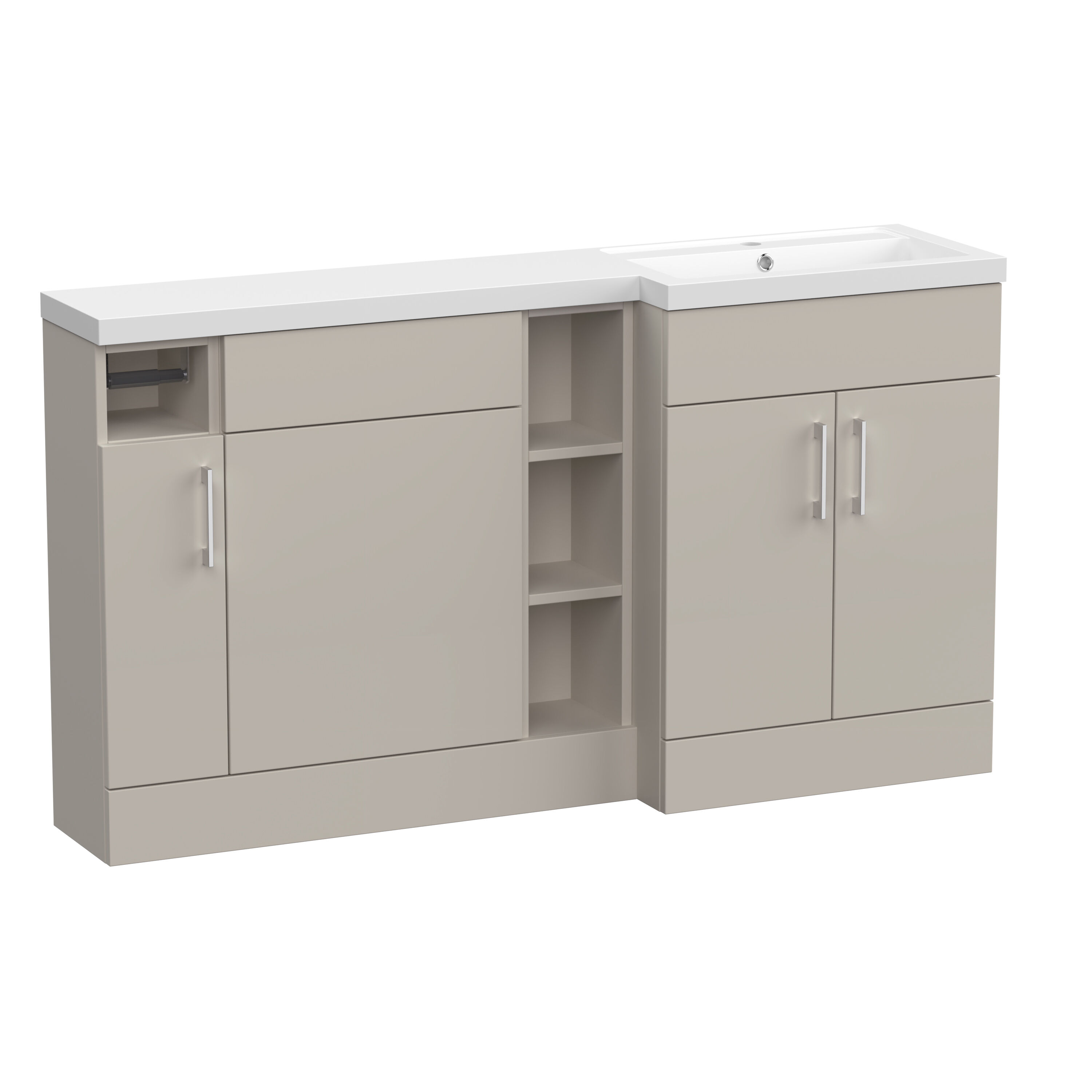 Nuie Lux Krest 1500mm Full Depth Combination Unit & L-Shaped Basin - Right Hand - Pebble Grey