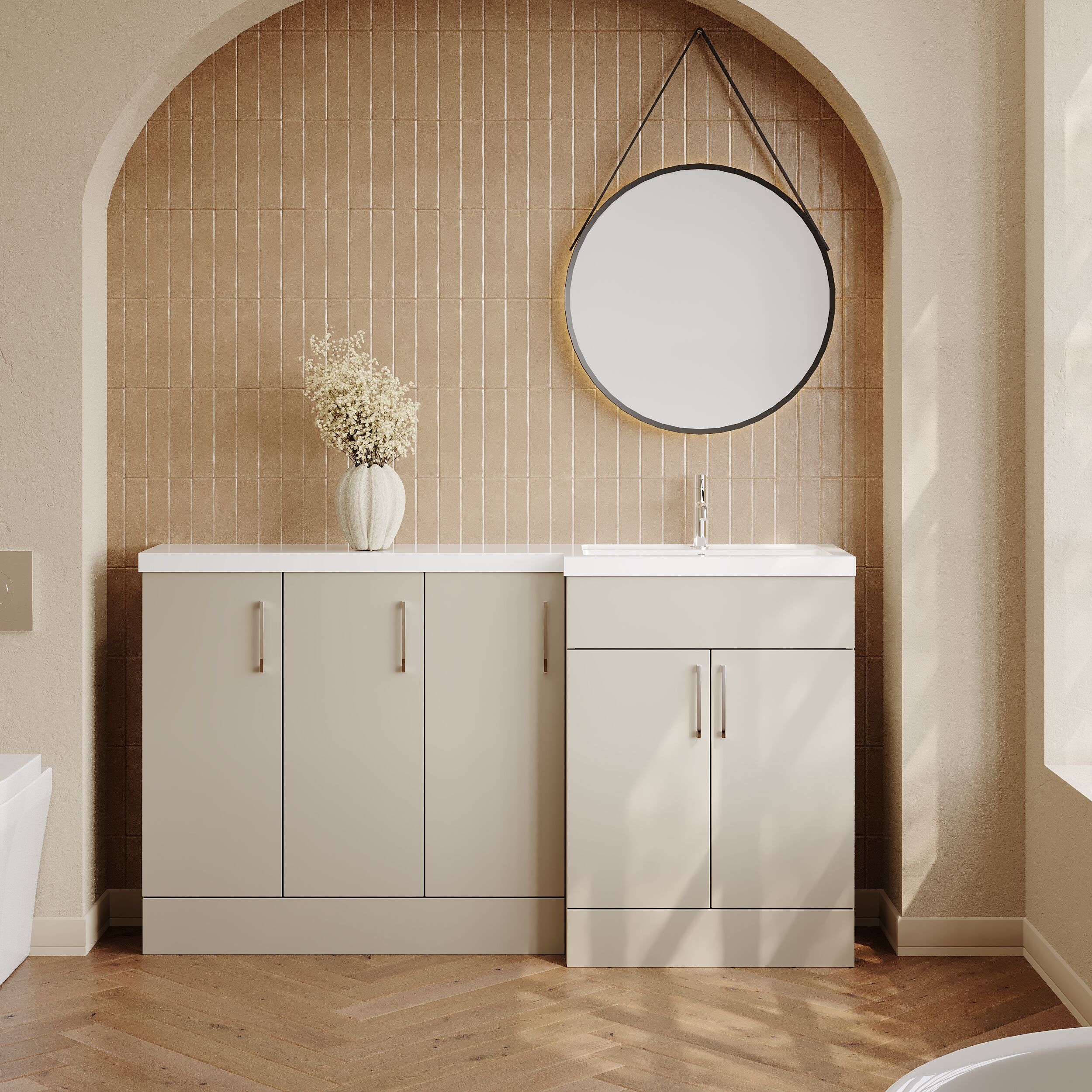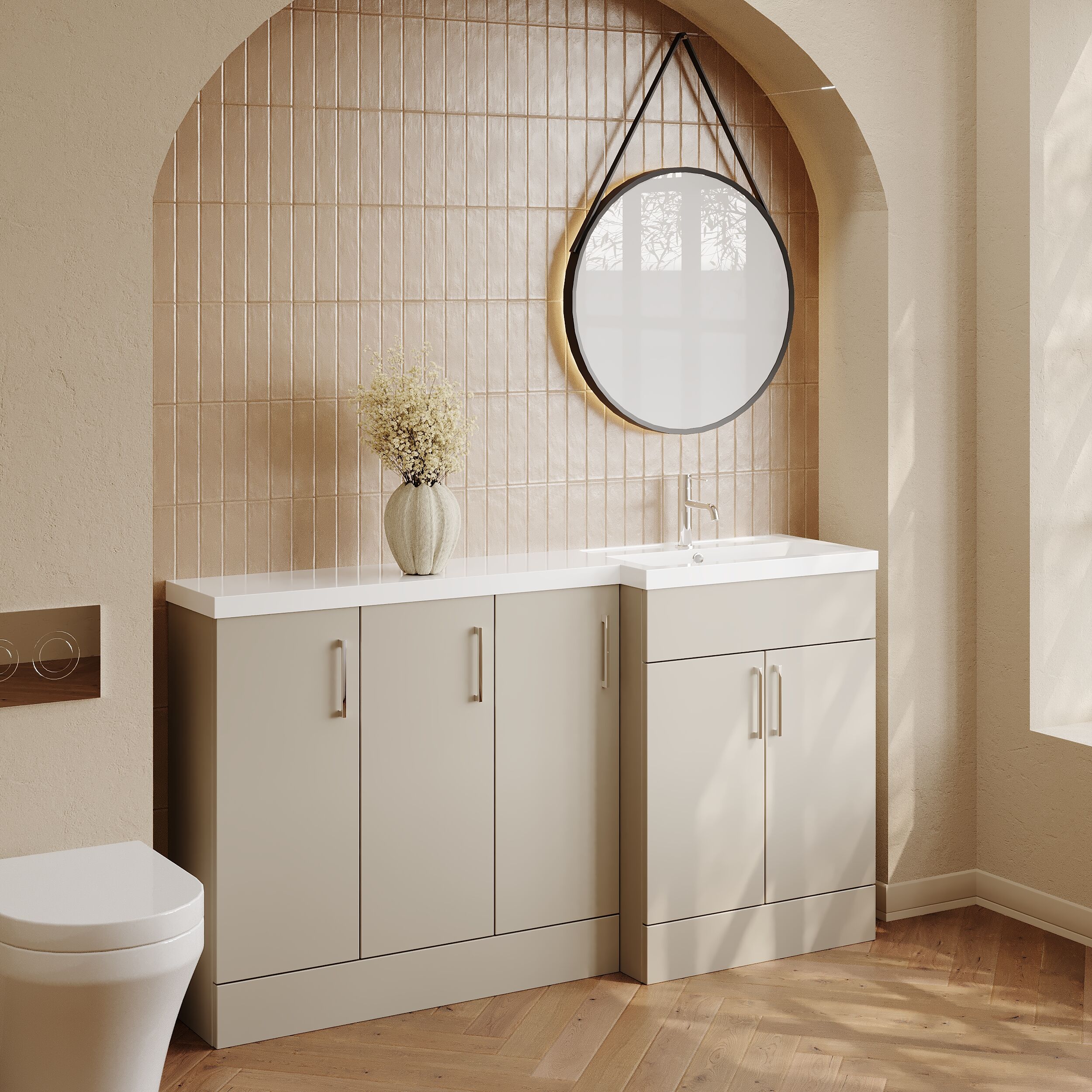 Nuie Lux Krest 1500mm Full Depth Combination Unit & L-Shaped Basin - Right Hand - Pebble Grey