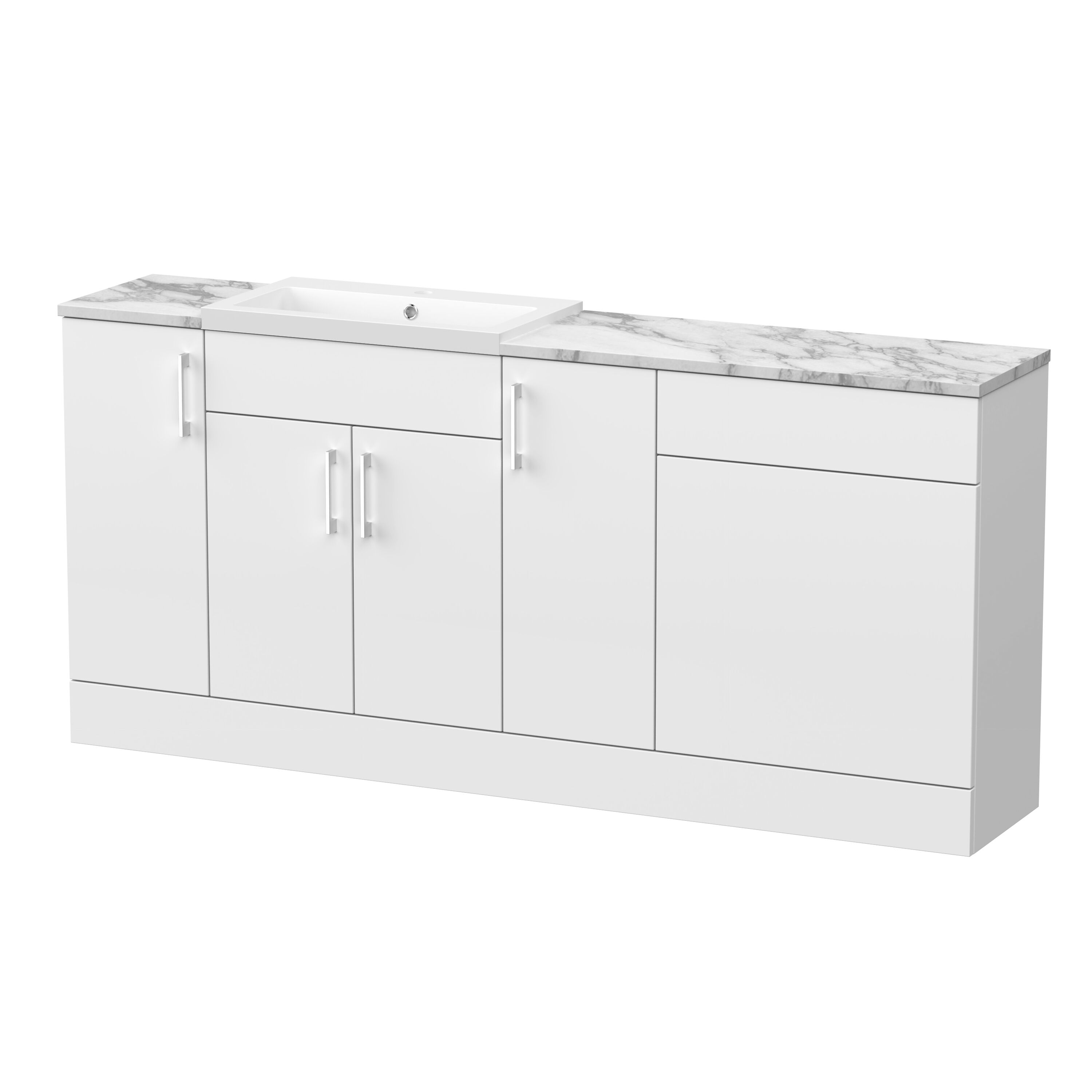 Nuie Lux Krest 1800mm Matt White Combination Unit & Basin With Soft Close Doors & Drawers, Handles
