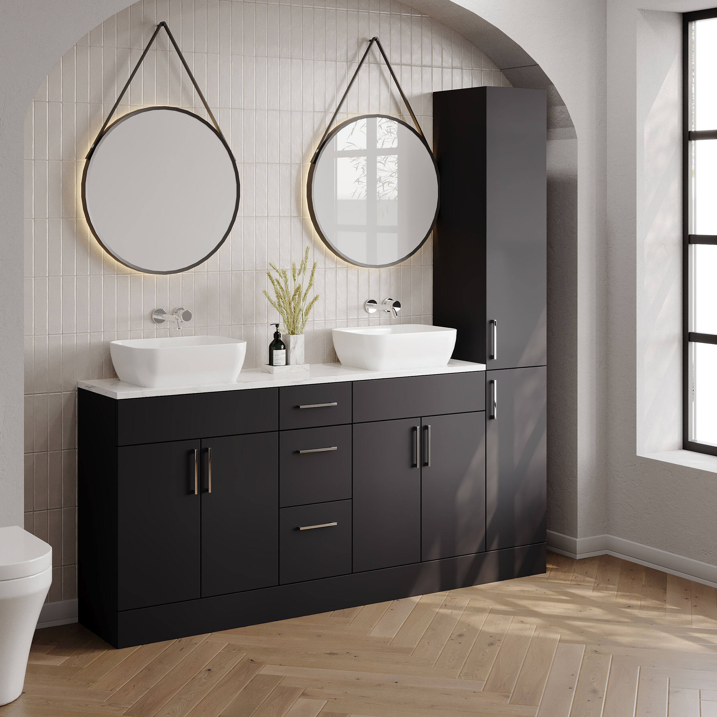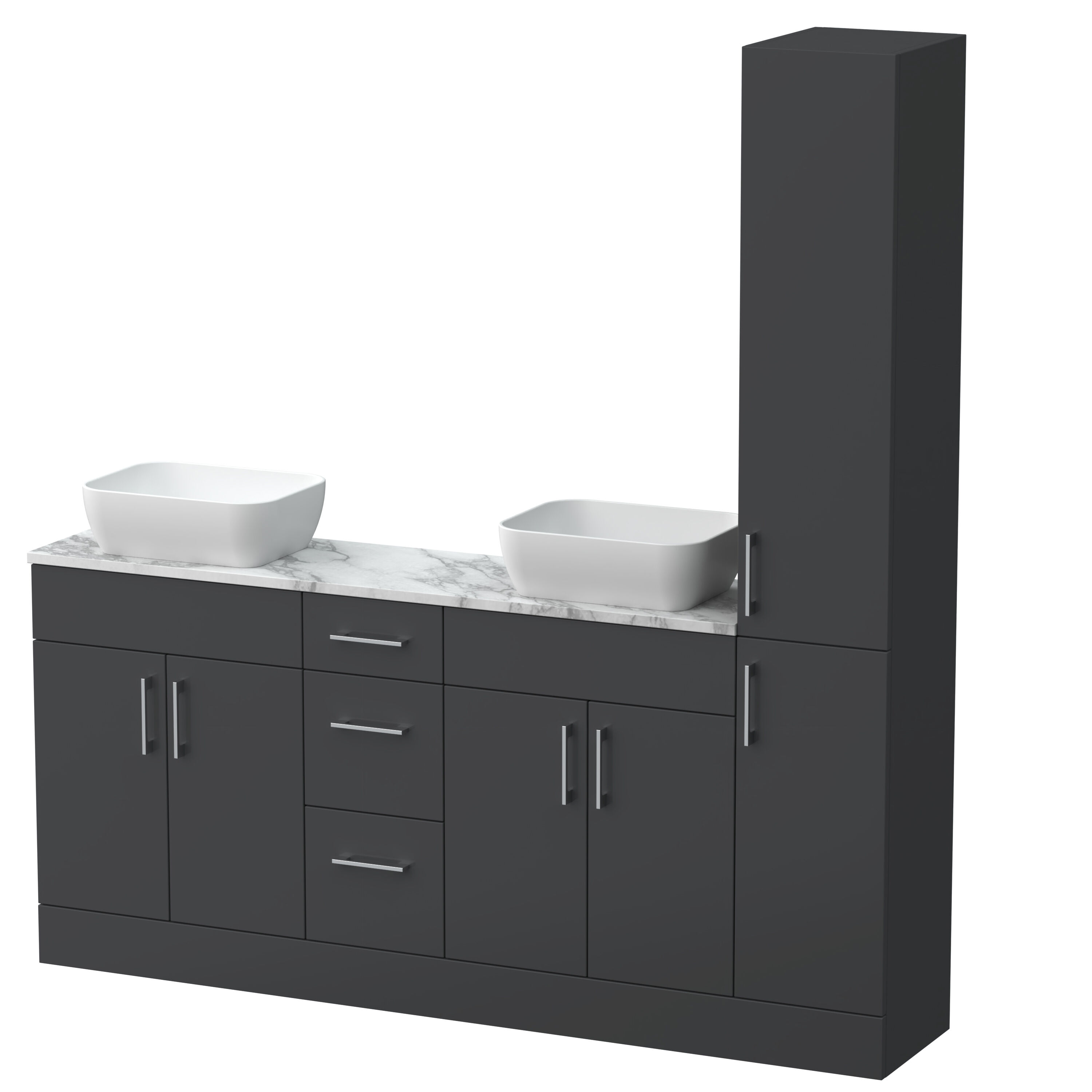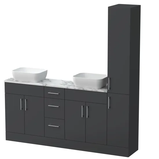 Supplied with a high quality laminate worktop and luxury vessel basin, as well as contemporary handles