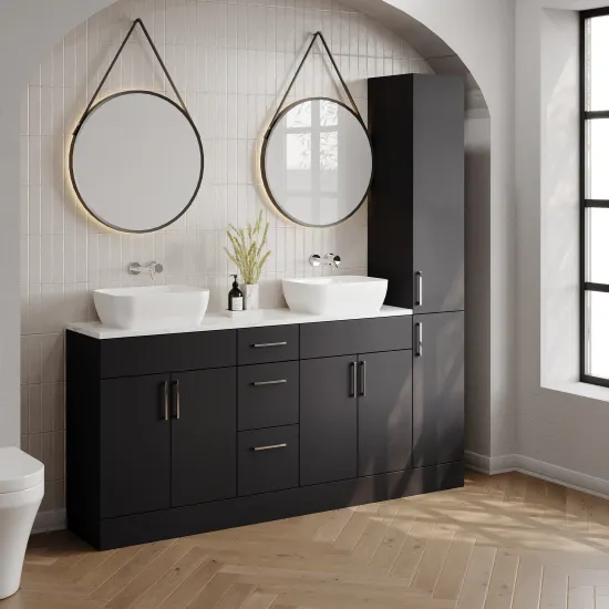 Nuie Lux Krest 1800mm Soft Black Combination Unit & Basin With Soft Close Doors