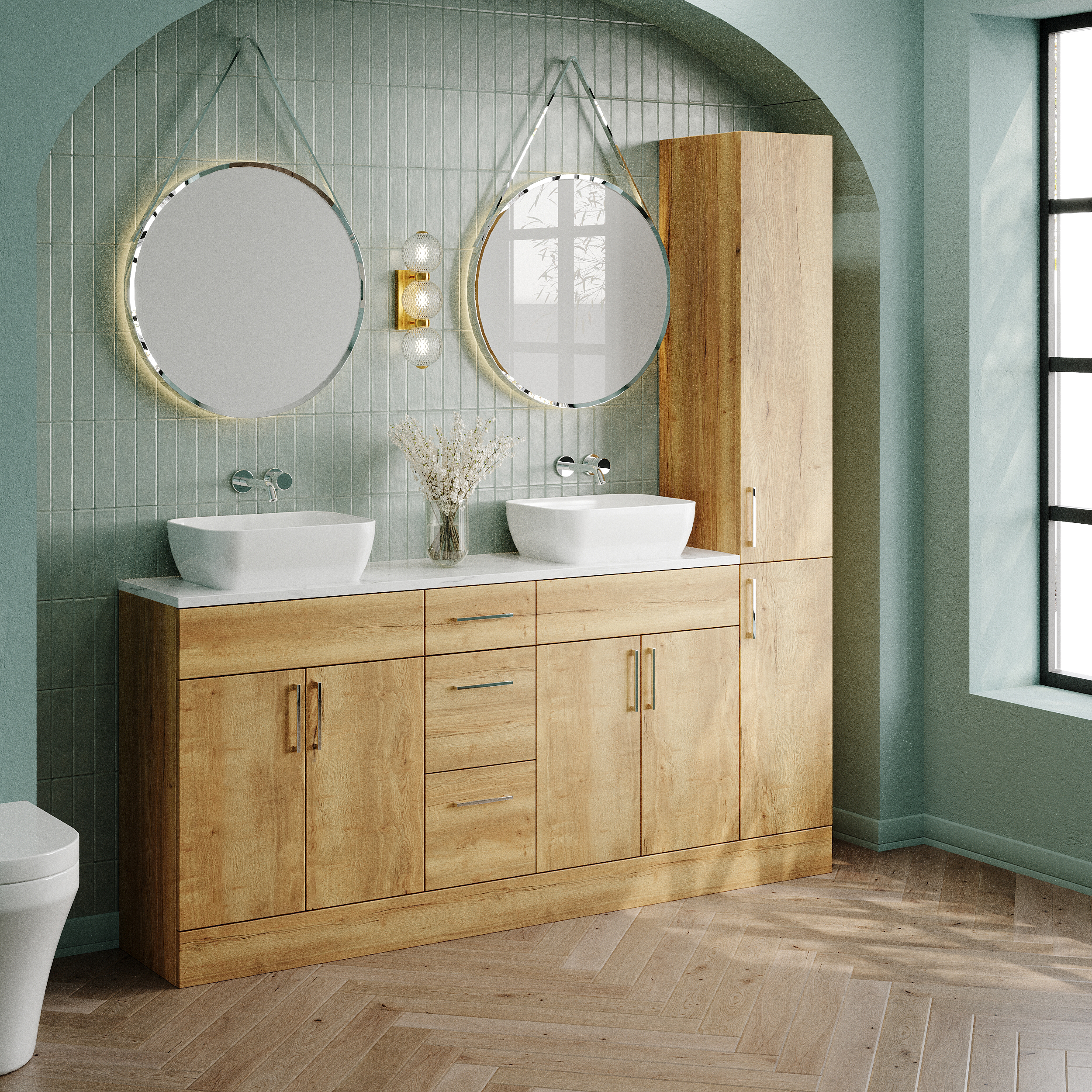 Nuie Lux Krest 1800mm Full Depth Combination Unit & Basin - Autumn Oak