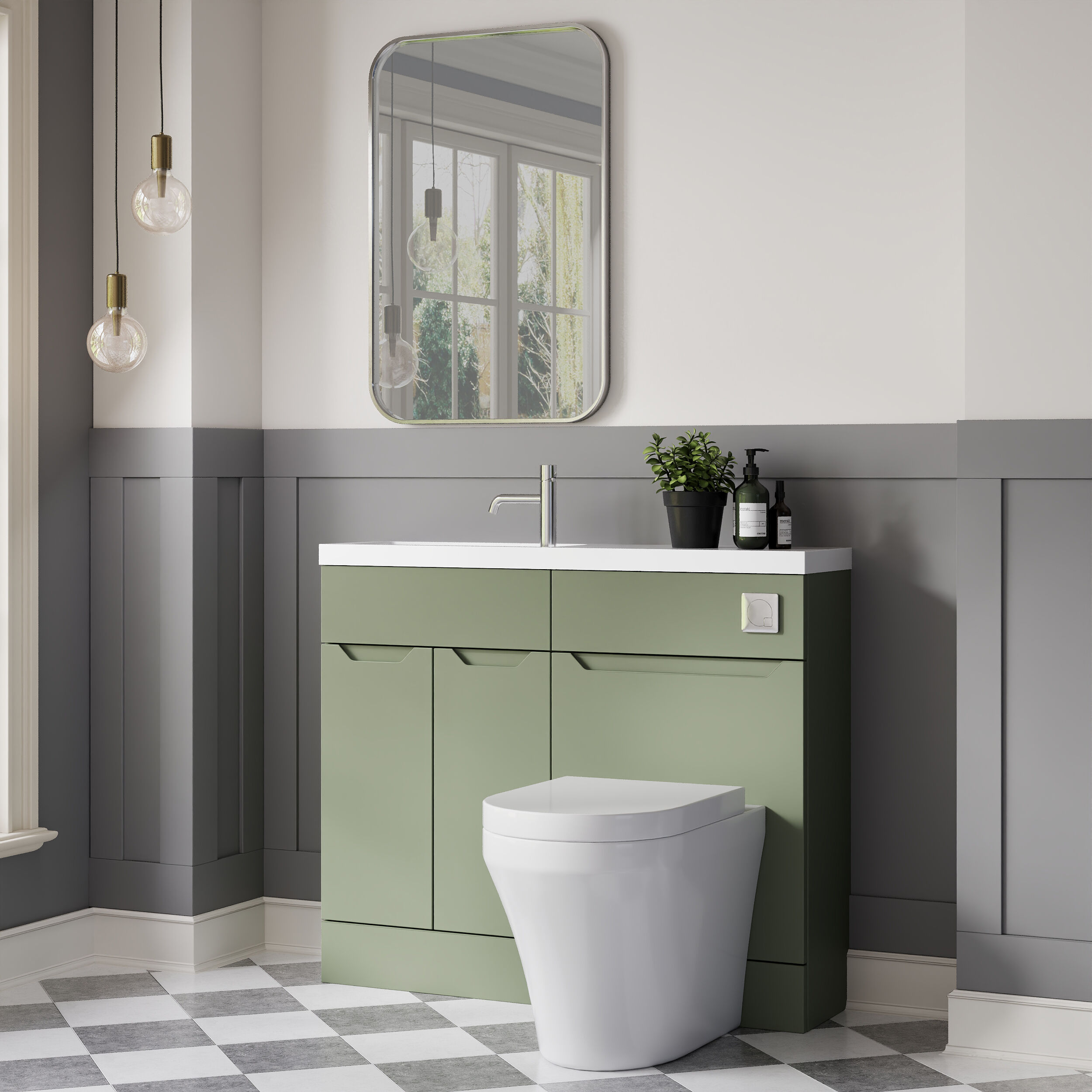 Nuie Lux Loave 1000mm Compact Combination Unit & Basin - Reed Green