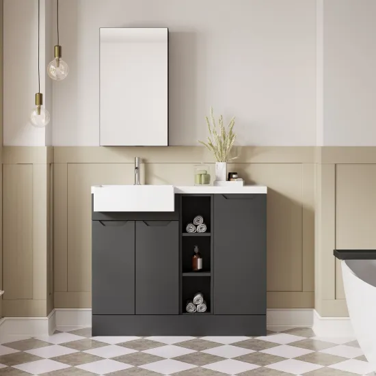 Nuie Lux Loave 1000mm Compact Combination Unit & Basin - Left Hand - Soft Black