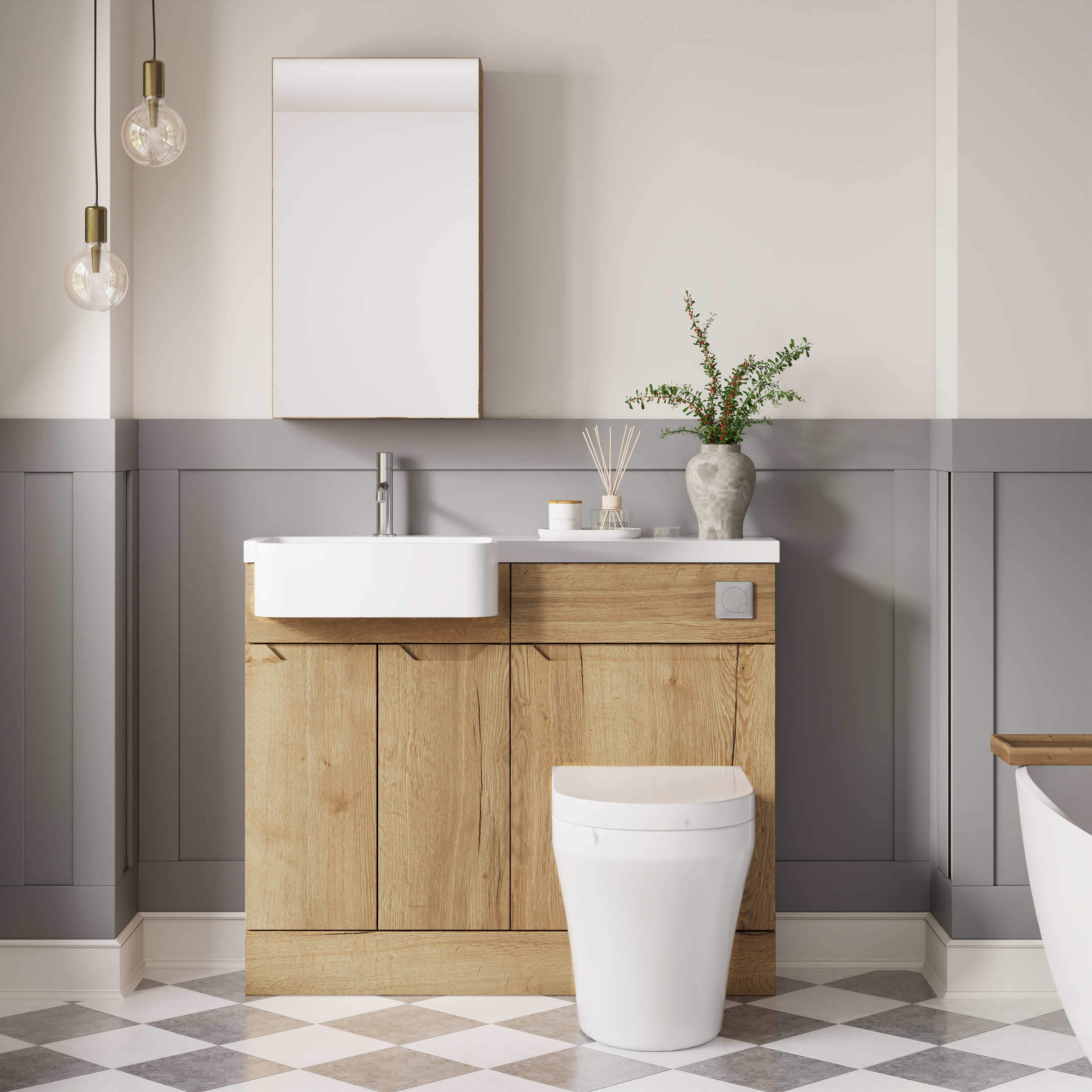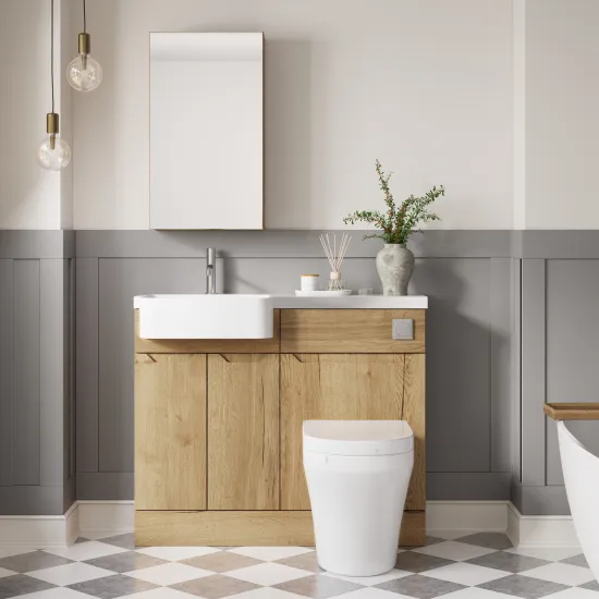 Nuie Lux Loave 1000mm Compact Combination Unit & Basin - Left Hand - Halifax Oak
