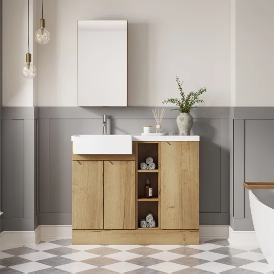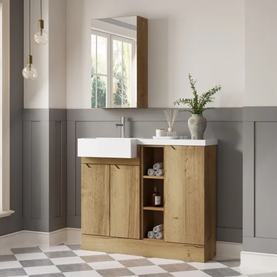 Nuie Lux Loave 1000mm Compact Combination Unit & Basin - Left Hand - Halifax Oak