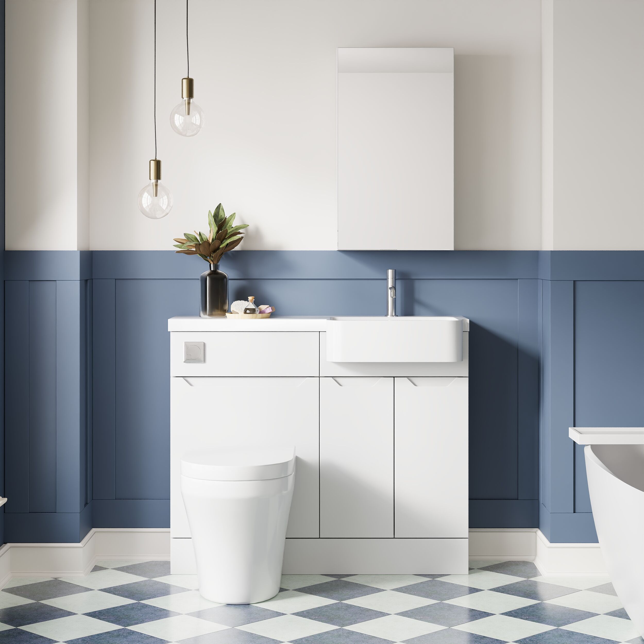 Nuie Lux Loave 1000mm Compact Combination Unit & Basin - Right Hand - Matt White