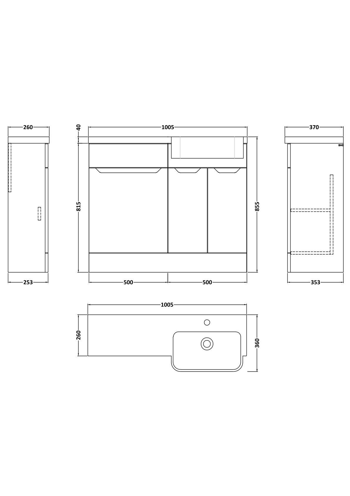 Supplied with luxury polymarble right-hand basin, predrilled with 1 tap hole.