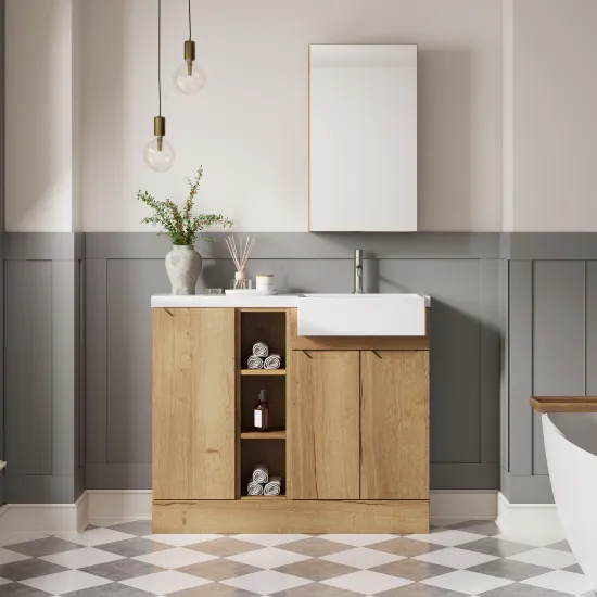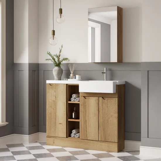 Nuie Lux Loave 1000mm Compact Combination Unit & Basin - Right Hand - Halifax Oak