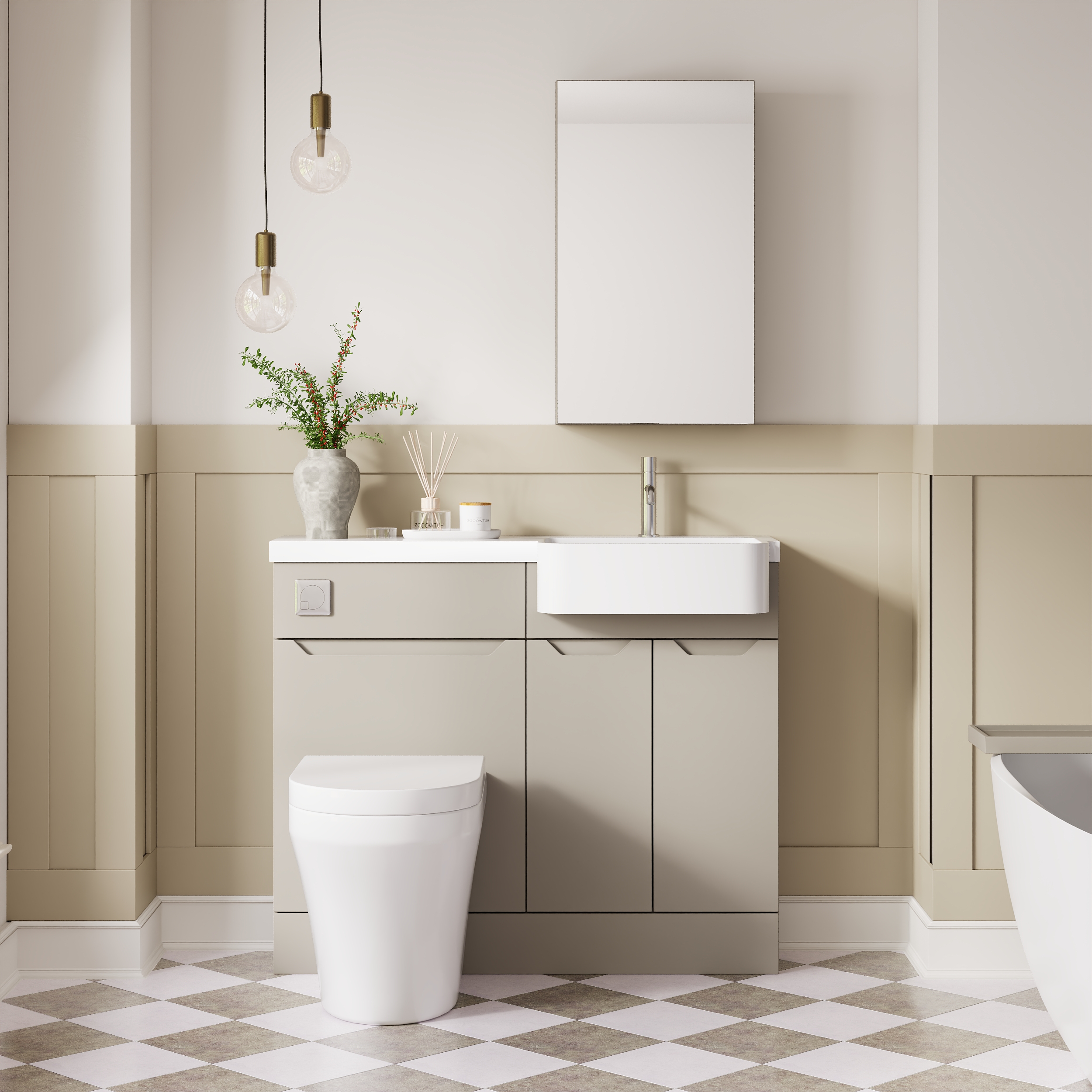 Nuie Lux Loave 1000mm Compact Combination Unit & Basin - Right Hand - Pebble Grey