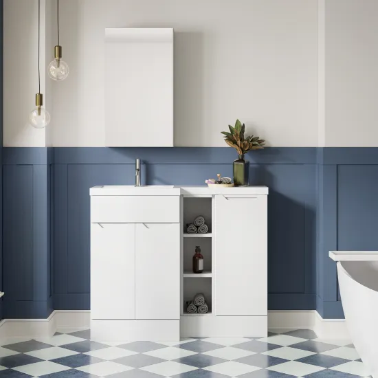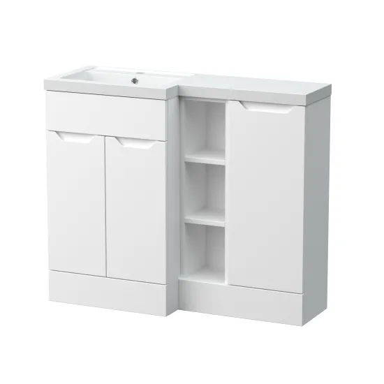 Nuie Lux Loave 1000mm Full Depth Combination Unit & L-Shaped Basin - Left Hand - Matt White