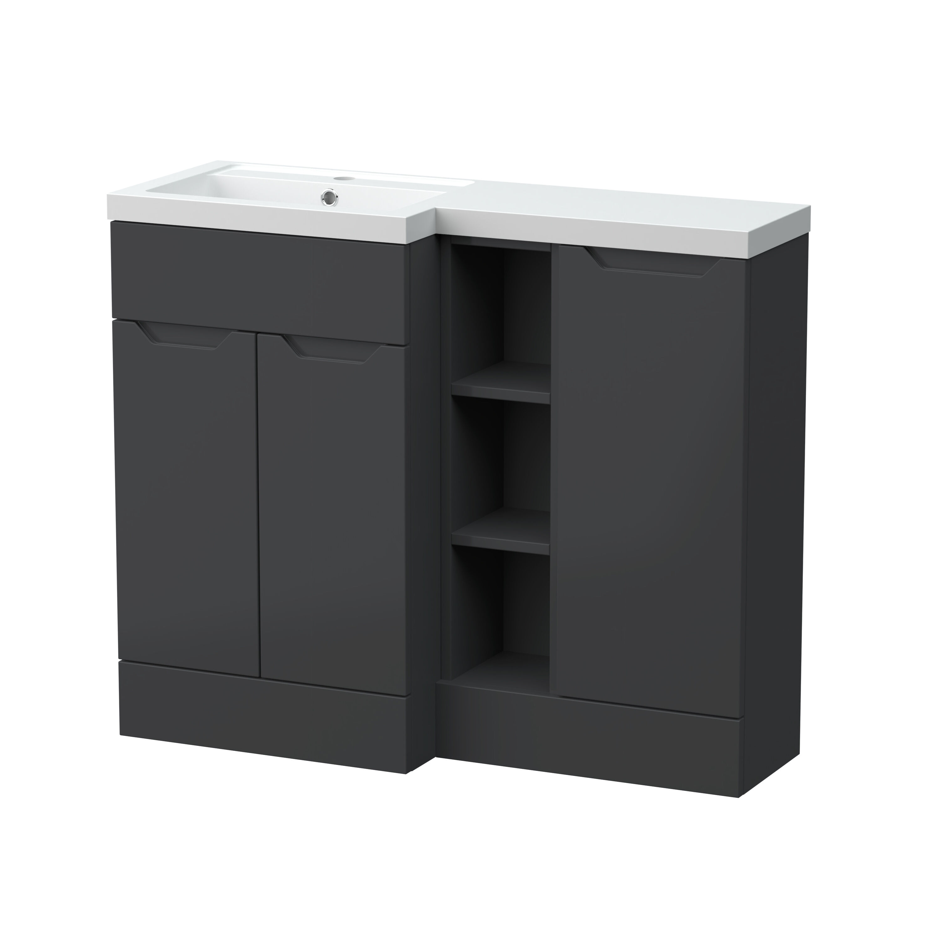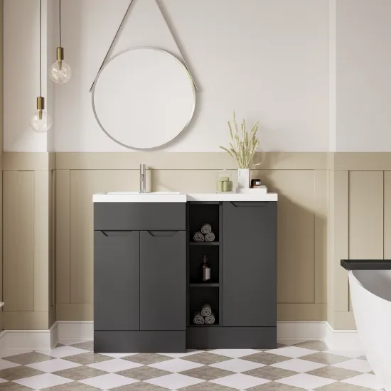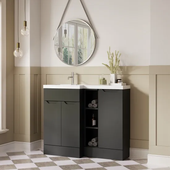 Nuie Lux Loave 1000mm Full Depth Combination Unit & L-Shaped Basin - Left Hand - Soft Black