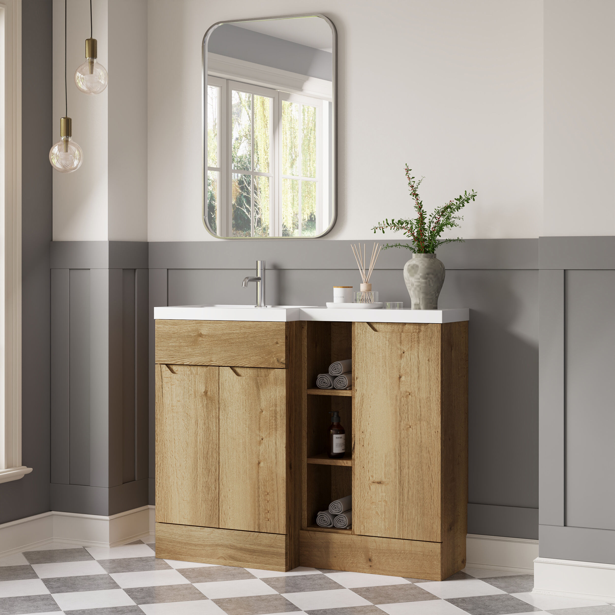 Nuie Lux Loave 1000mm Full Depth Combination Unit & L-Shaped Basin - Left Hand - Halifax Oak