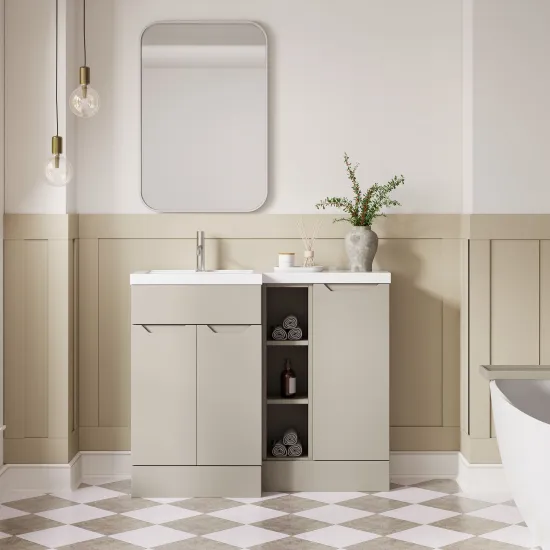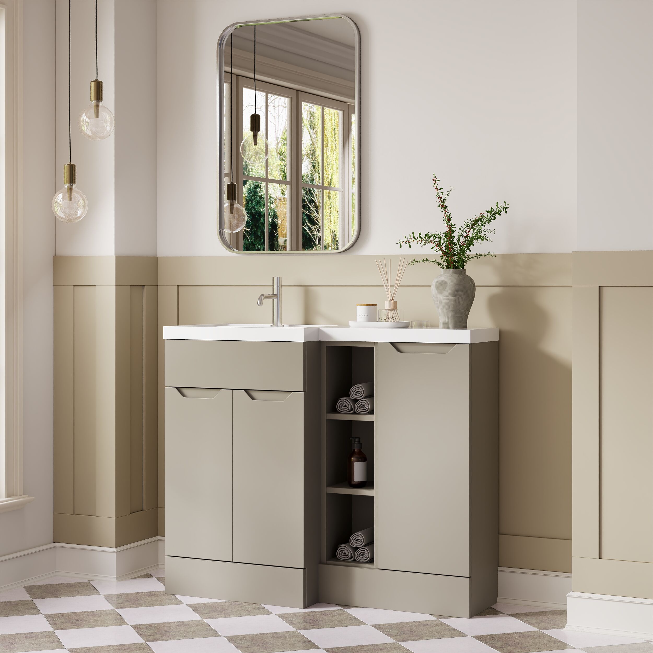 Nuie Lux Loave 1000mm Left Hand Pebble Grey Handleless Combination Unit & L-Shaped Basin