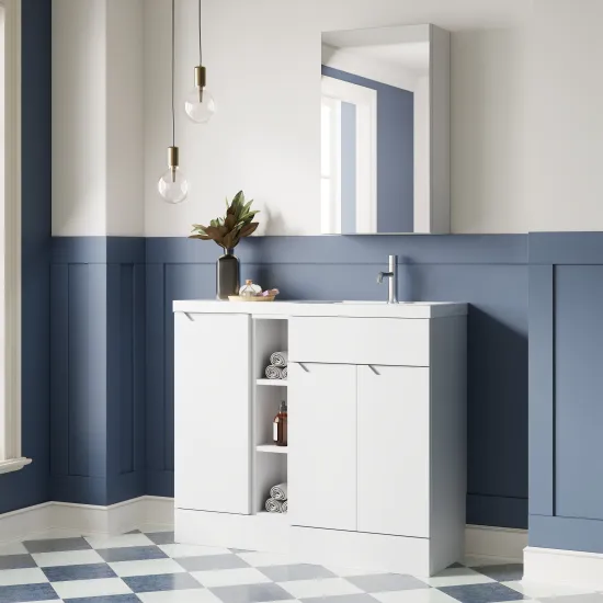 Nuie Lux Loave 1000mm Full Depth Combination Unit & L-Shaped Basin - Right Hand - Matt White