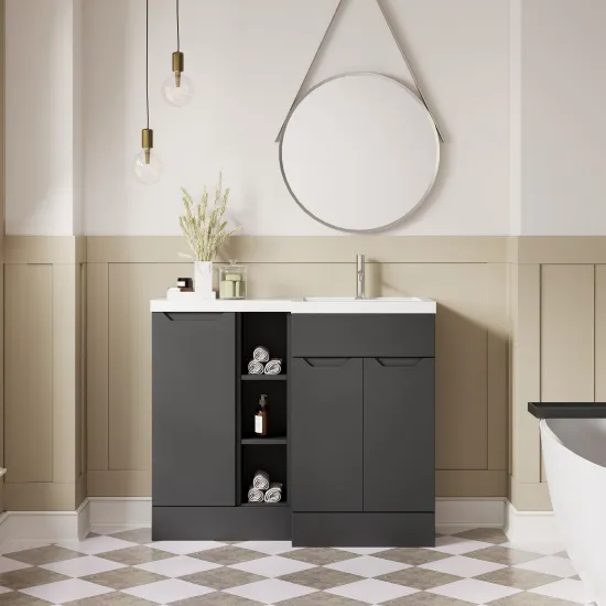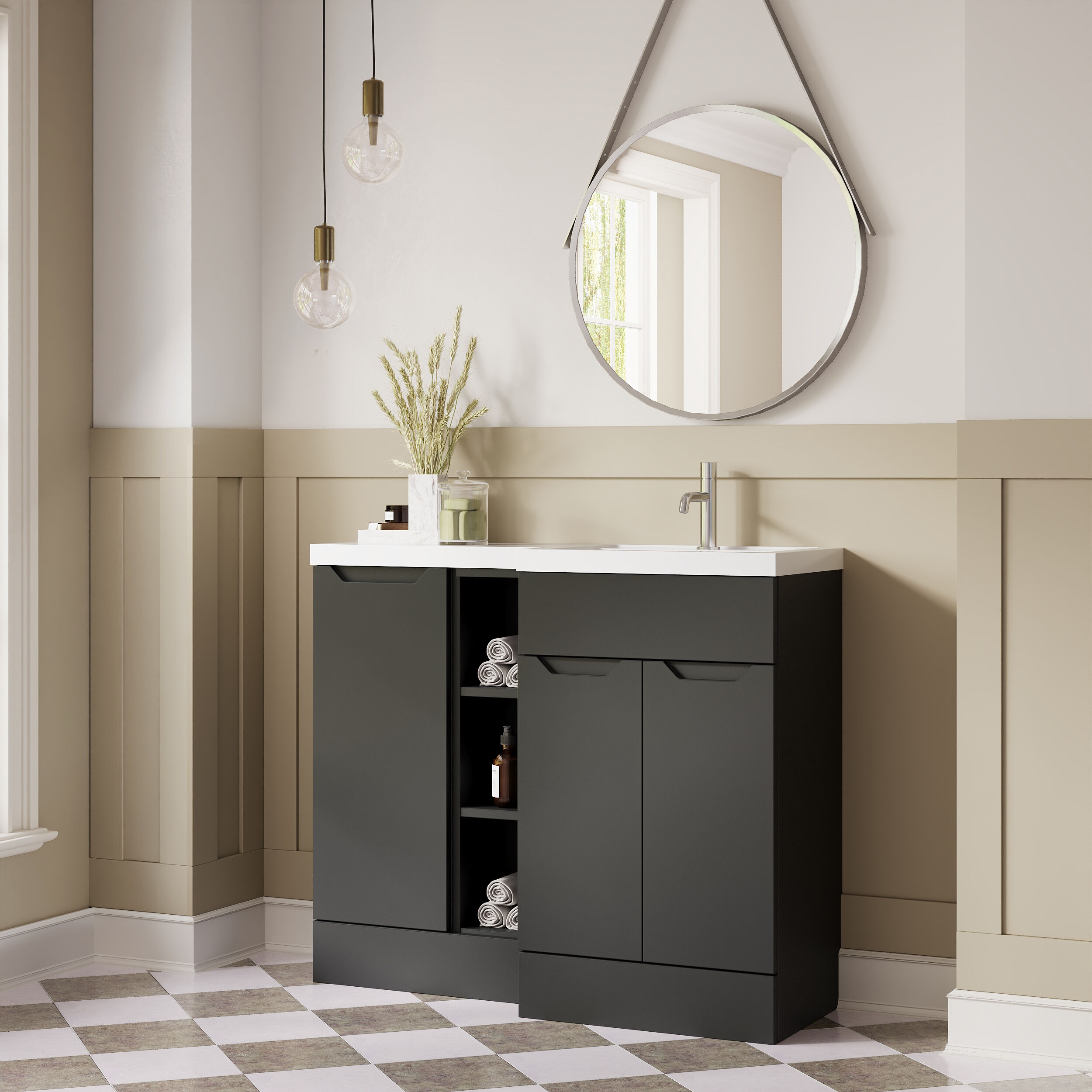 Nuie Lux Loave 1000mm Full Depth Combination Unit & L-Shaped Basin - Right Hand - Soft Black