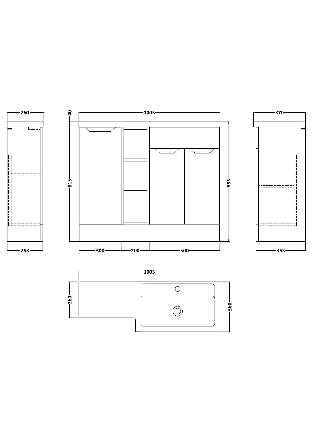 Nuie Lux Loave 1000mm Full Depth Combination Unit & L-Shaped Basin - Right Hand - Halifax Oak